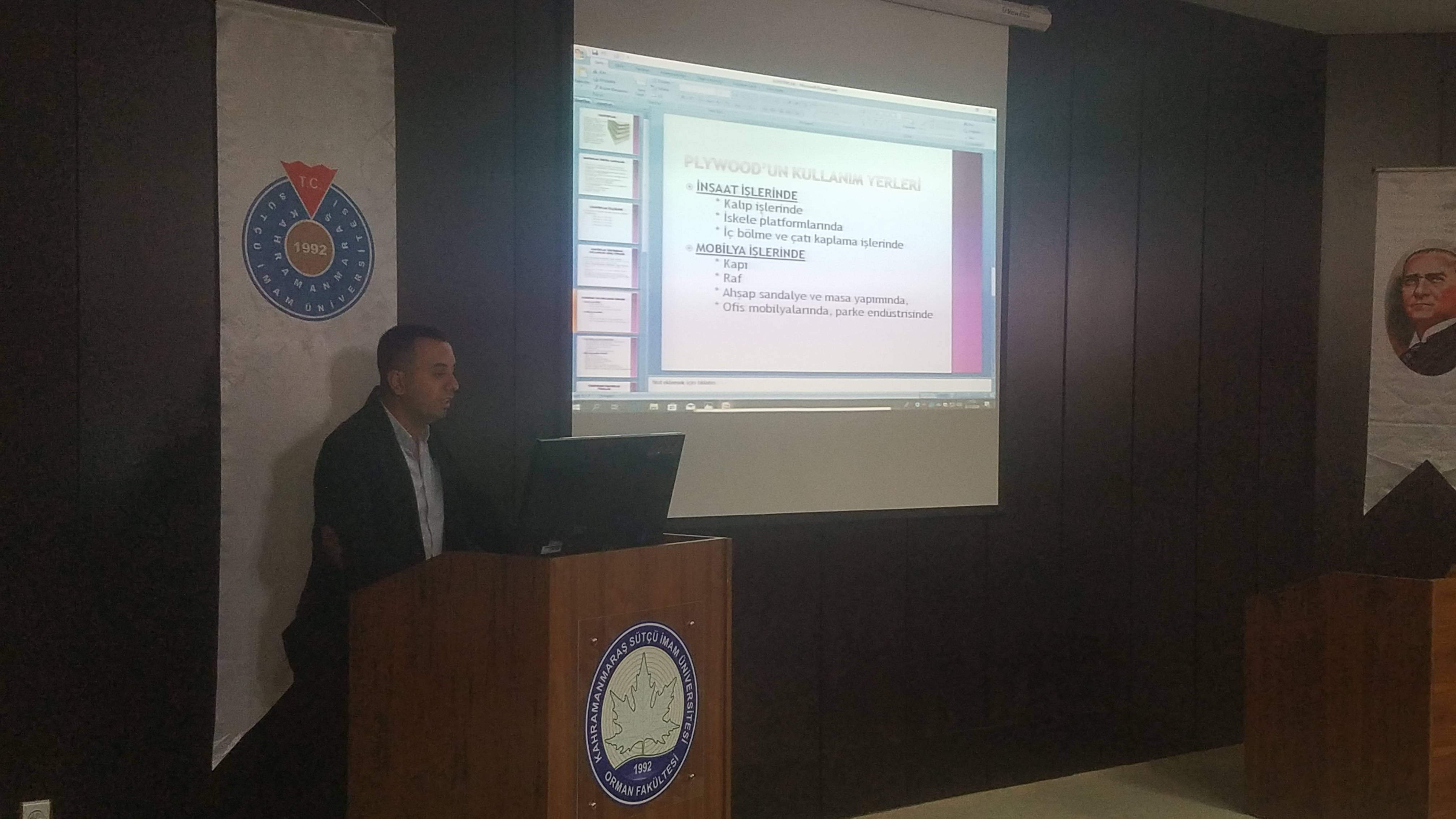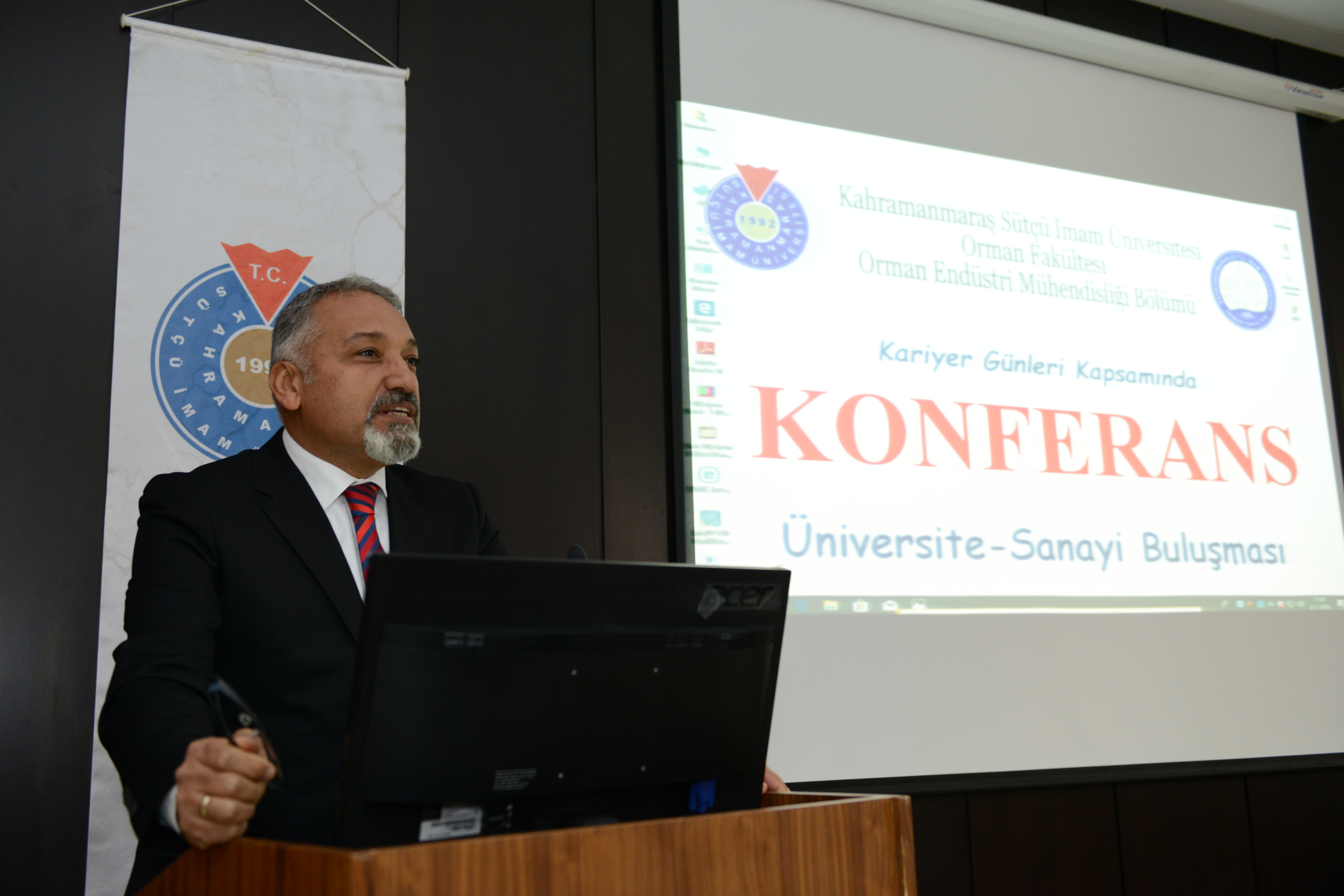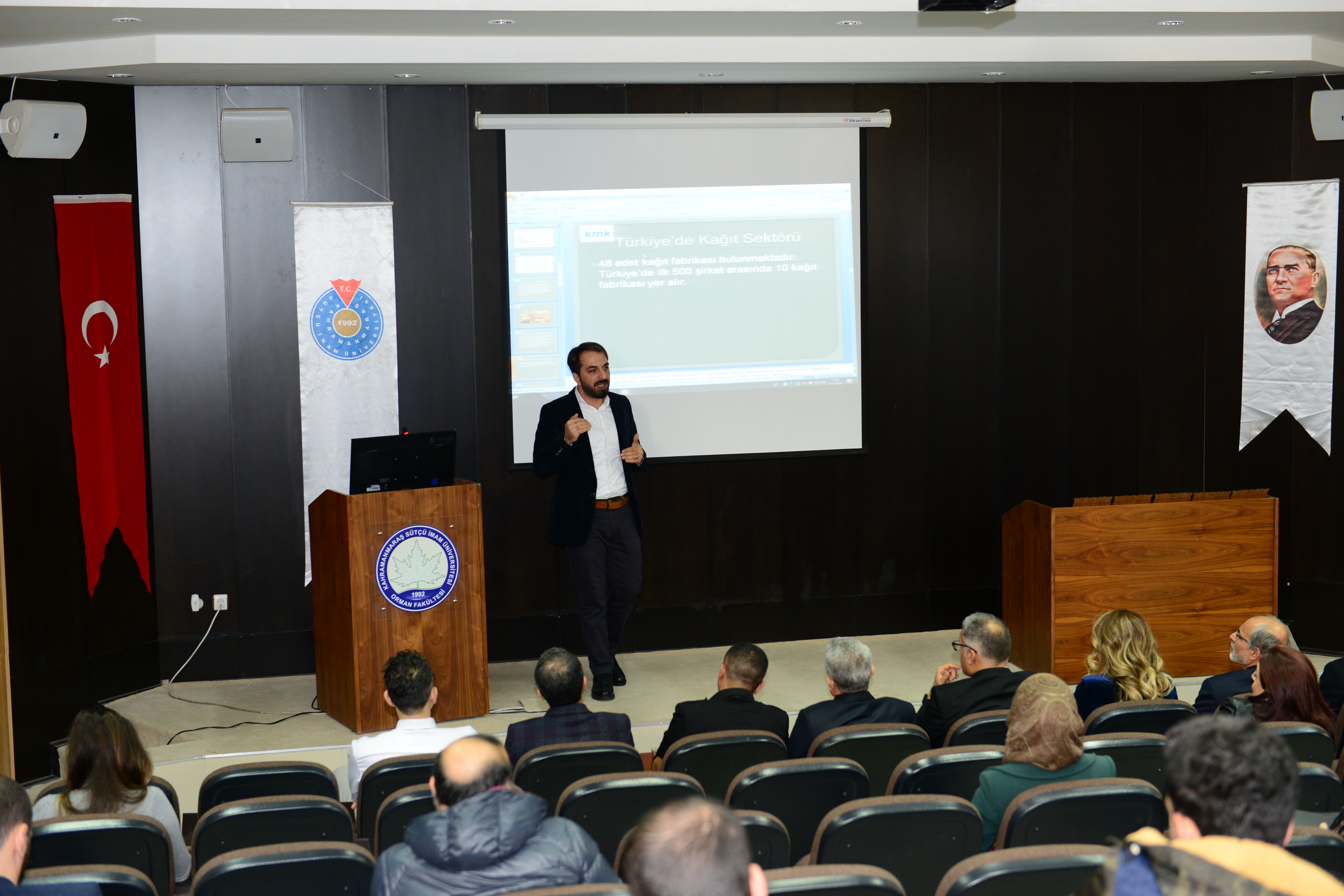 KSÜ Orman Fakültesi Prof. Dr. Mehmet Kanat Konferans Salonunda gerçekleştirilen konferansın açılış konuşmasını Orman Endüstri Mühendisliği Bölüm Başkanı Prof. Dr. Ahmet Tutuş yaptı. 18 yıllık bir geçmişe sahip olan Orman Endüstri Mühendisliği Bölümünün bu yıl 14. mezunlarını vereceğini hatırlatan Tutuş, kendini en iyi şekilde yetiştiren öğrencilerin sektörde kolaylıkla iş bulabildiğine dikkat çekti.