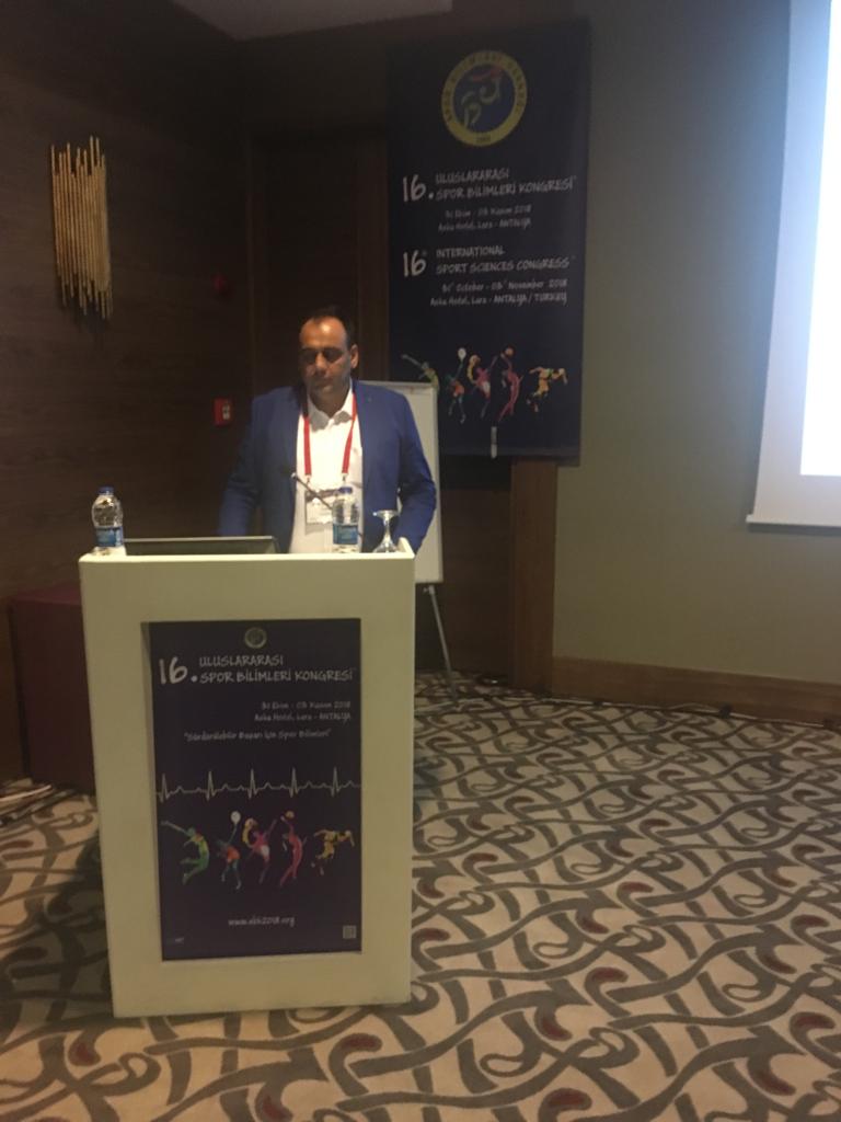 31 Ekim - 03 Kasım 2018 tarihleri arasında Antalya’da düzenlenen 16. Uluslararası Spor Bilimleri Kongresine “Üniversiteli Futsal Sporcularının Kaygı ve Öfke İfade Biçimleri Arasındaki İlişki ve Bazı Değişkenlere Göre İncelenmesi” başlıklı çalışması ile Yüksekokulumuz Müdürü Doç.Dr.Ünal TÜRKÇAPAR Sözel Bildiri Sunumu yapmıştır.