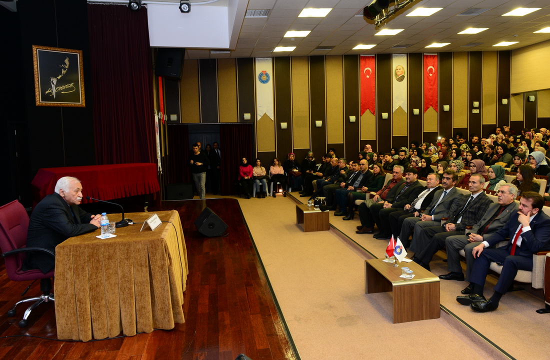 Üniversitemiz Rektörü Prof. Dr. Niyazi Can ise konuşmasına şiirleri ve eserleriyle Türk insanının kalbine taht kuran Yavuz Bülent Bakiler’i üniversitemizde ağırlamaktan duyduğu memnuniyeti dile getirerek başladı. Eserlerinde bizi, bizim insanımızı anlatan ve yansıtan Yavuz Bülent Bakiler’i okumanın ve fikirlerini anlamanın önemine vurgu yapan Rektör Can, “Hangi alanda çalışıyor olursak olalım. Hangi eğitimi alıyorsak alalım. Edebi eserlerden istifade ettiğimiz ölçüde etkili ve başarılı olabiliriz. Edebiyat ve sanat dünyamızın önemli isimlerini tanımalı, kıymetli eserlerini okumalı ve başucu kitabı yapmalıyız.” diye konuştu.
