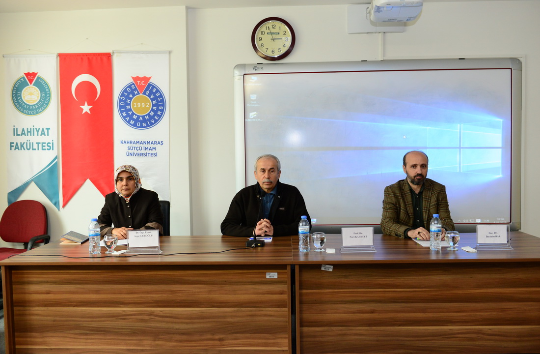 İlahiyat Fakültesi Konferans Salonunda gerçekleştirilen panelin moderatörlüğünü KSÜ İlahiyat Fakültesi İslam Hukuku Anabilim Dalı Başkanı Prof. Dr. Nuri Kahveci yaptı. Panelde konuşmacı olarak ise KSÜ İlahiyat Fakültesi Türk İslam Edebiyatı Anabilim Dalı Başkanı Dr. Öğretim Üyesi Ayşe Farsakoğlu Eroğlu ve Şırnak Üniversitesi Genel Sekreteri, İlahiyat Fakültesi Tasavvuf Anabilim Dalı Başkanı Doç. Dr. İbrahim Baz yer aldı.