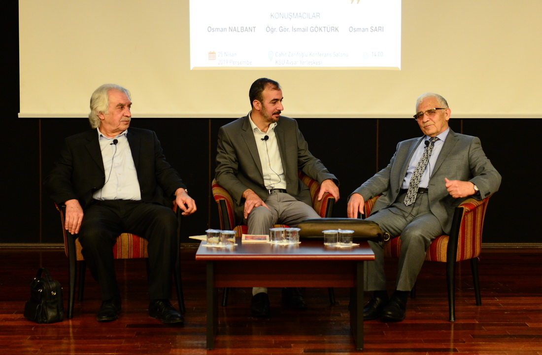 Video gösteriminin ardından söyleşi programına geçilirken Kahramanmaraş ve Yöresi Kültürel Değerlerini Araştırma ve Uygulama Merkezi Müdürü Öğretim Görevlisi İsmail Göktürk’ün yönetiminde İstanbul Fatih Sultan Mehmet Üniversitesi Dr. Öğretim Üyesi Osman Sarı ve Kültür Bakanlığı Güzel Sanatlar eski Genel Müdürü Osman Nalbant tarafından söyleşi gerçekleştirildi.