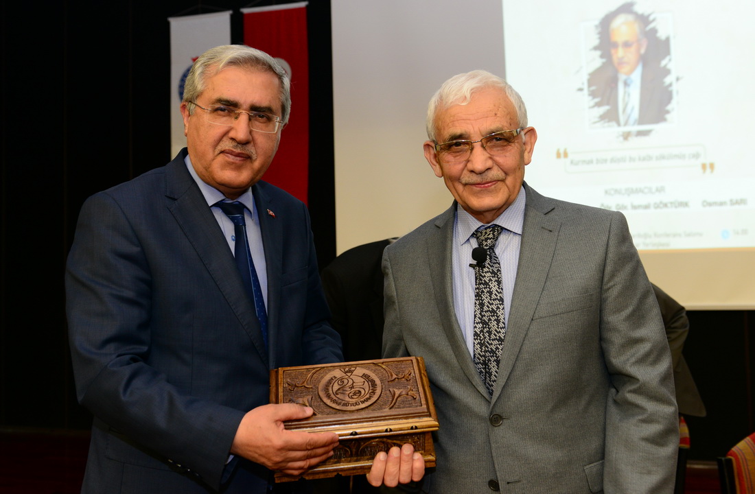 Söyleşinin ardından Rektör Can tarafından Şair Osman Sarı ve Osman Nalbant’a günün hatırası için hediye takdimi gerçekleştirildi.