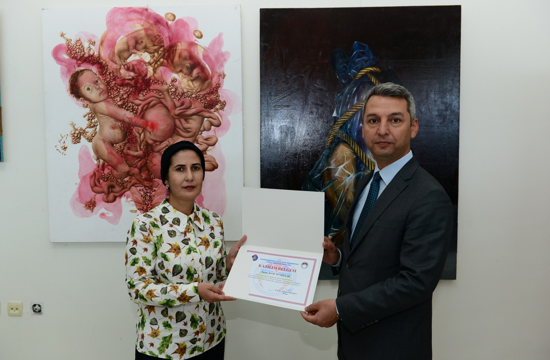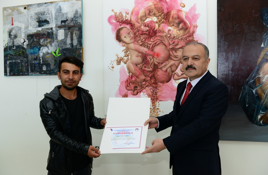Açılış konuşmalarının ardından Rektör Yardımcısı Prof. Dr. İbrahim Taner Okumuş ve protokol üyeler sergiyi gezerekken, GSF Üniversite Öğrencileri İçin 16. Resim Yarışmasında dereceye giren ve sergilenmeye değer görülen eser sahiplerine katılım belgelerini takdim edildi.