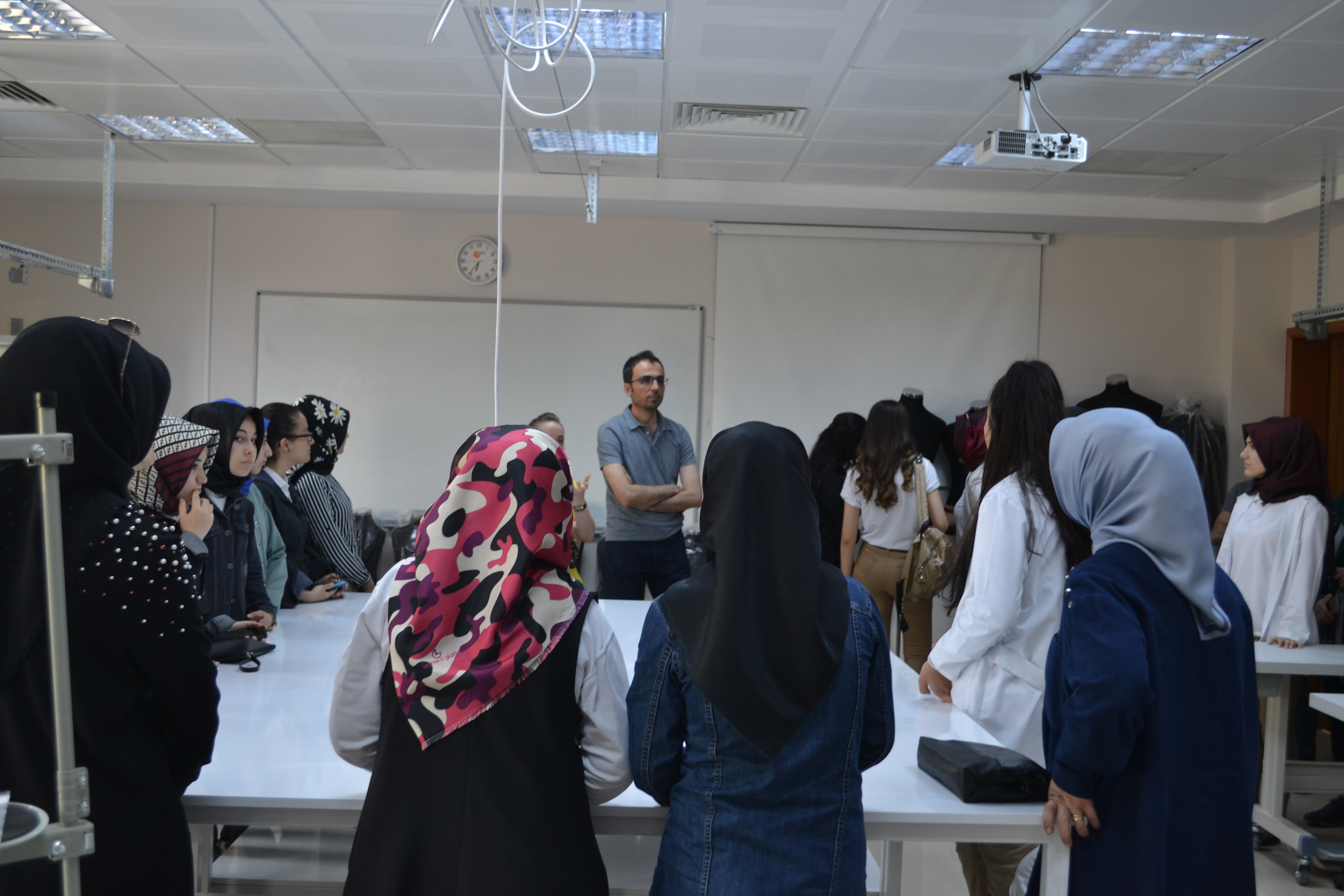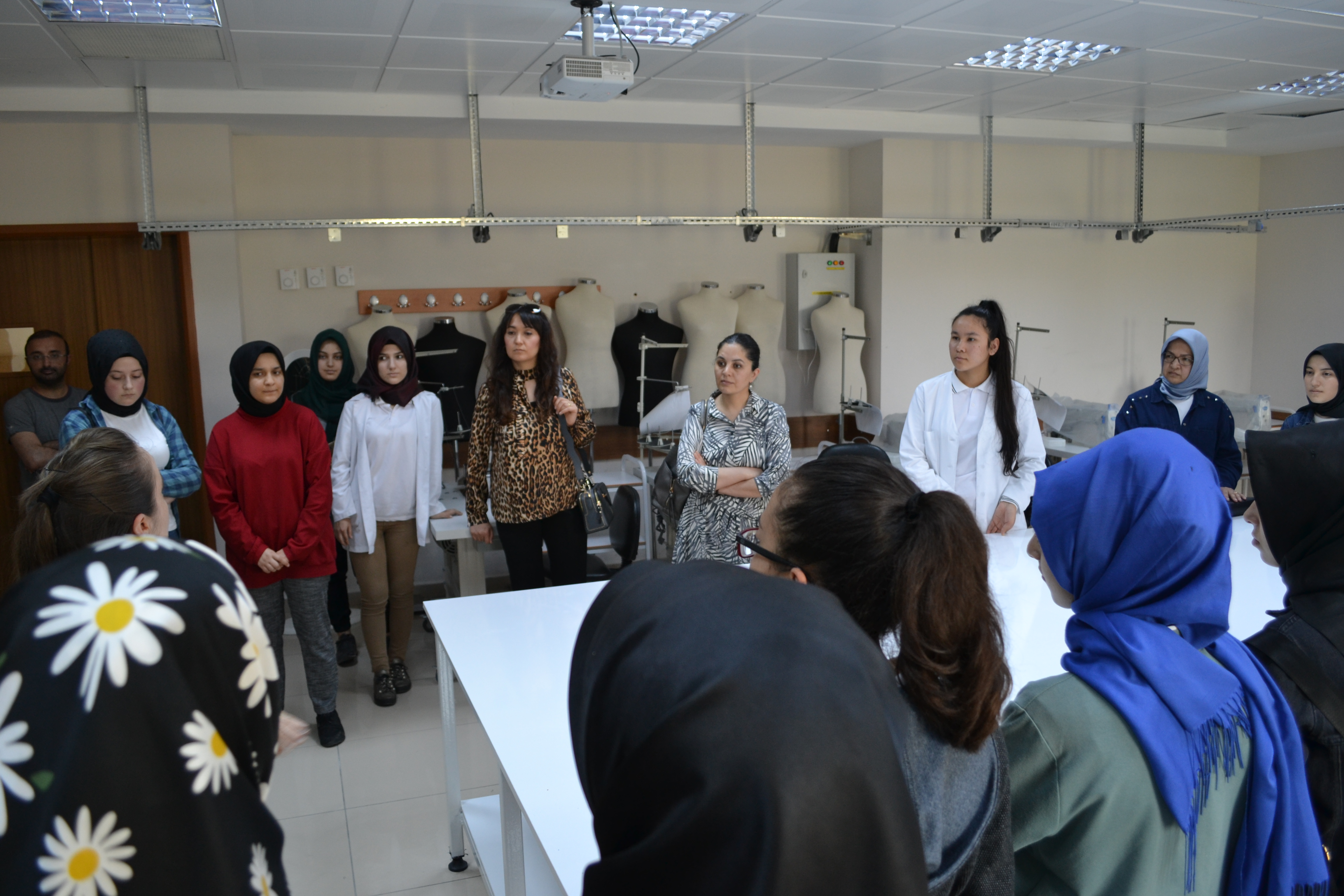 Ziyaretin sonraki kısmında 2018-2019 Eğitim-Öğretim yılında ilk öğrenci alımını gerçekleştiren, Güzel Sanatlar Fakültesi Tekstil ve Moda Tasarımı Bölümü bünyesinde kurulan Moda Tasarımı Atölyesi, Drapaj Atölyesi, Moda Resmi Atölyesi ve Bilgisayar Laboratuvarı öğrencilere tanıtılmıştır.