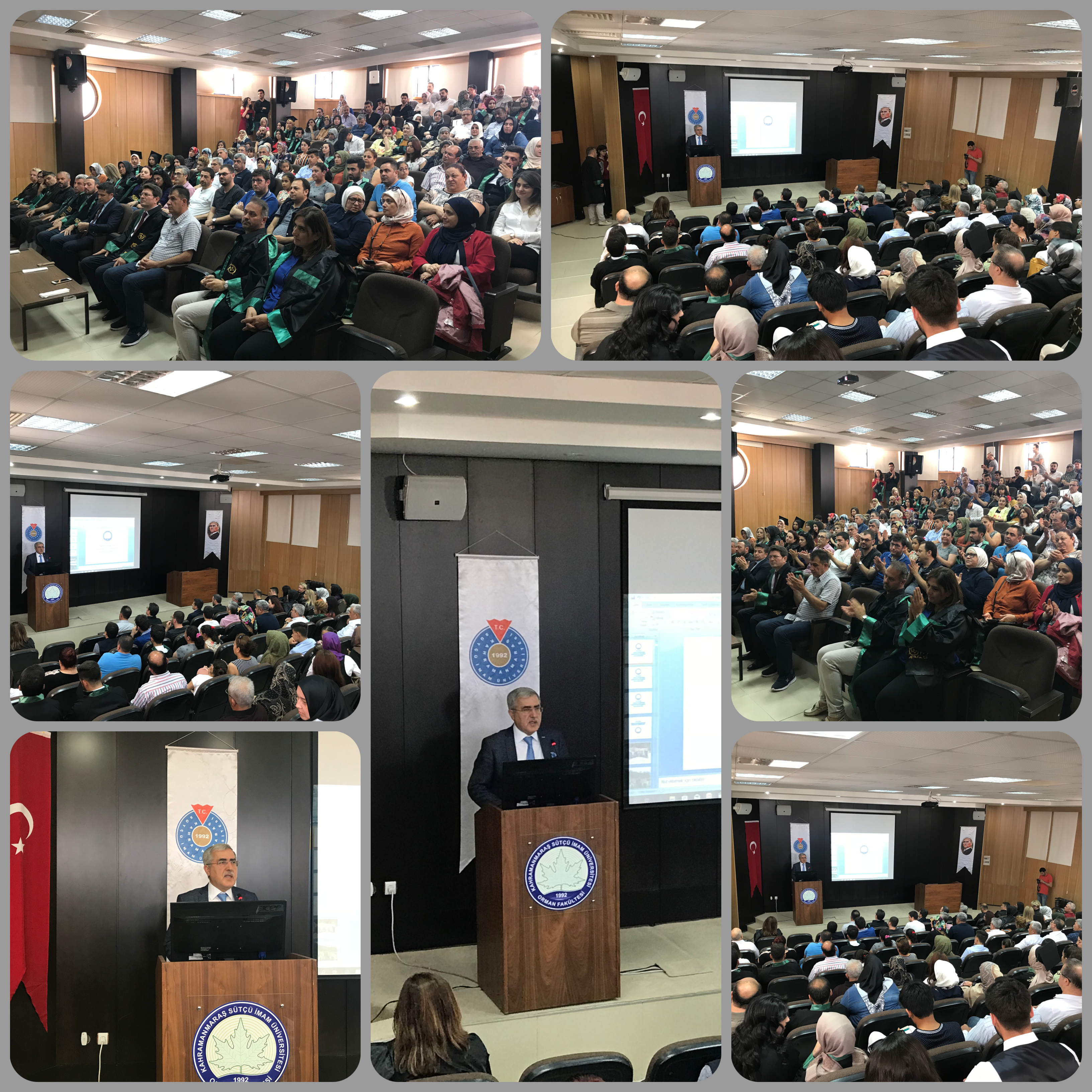 2018-2019 Eğitim- Öğretim Yılı Mezuniyet Programı Kahramanmaraş Sütçü İmam Üniversitesi Rektörü Sn. Prof. Dr. Niyazi CAN, Orman Fakültesi Dekanı Sn. Prof. Dr. Hasan SERİN, Orman Bölge Müdürü Sn. Alparslan ALTUNTAŞ, Orman Mühendisleri Odası Temsilcileri, Peyzaj Mimarları Odası temsilcisi, Öğretim Elemanları, öğrenciler ve ailelerinin katılımıyla gerçekleştirildi... Orman Fakültesi ailesi olarak bütün mezunlarımıza gelecek hayatlarında başarılar diliyoruz...