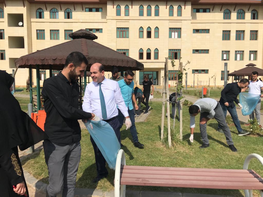Dekanımız Mehmet Akif Özdoğan ile Fakültemiz öğrencileri, farkındalık oluşturmak amacıyla Üniversitemiz İlahiyat Fakültesi Bahçesinde çevre temizliği etkinliği düzenledi.
