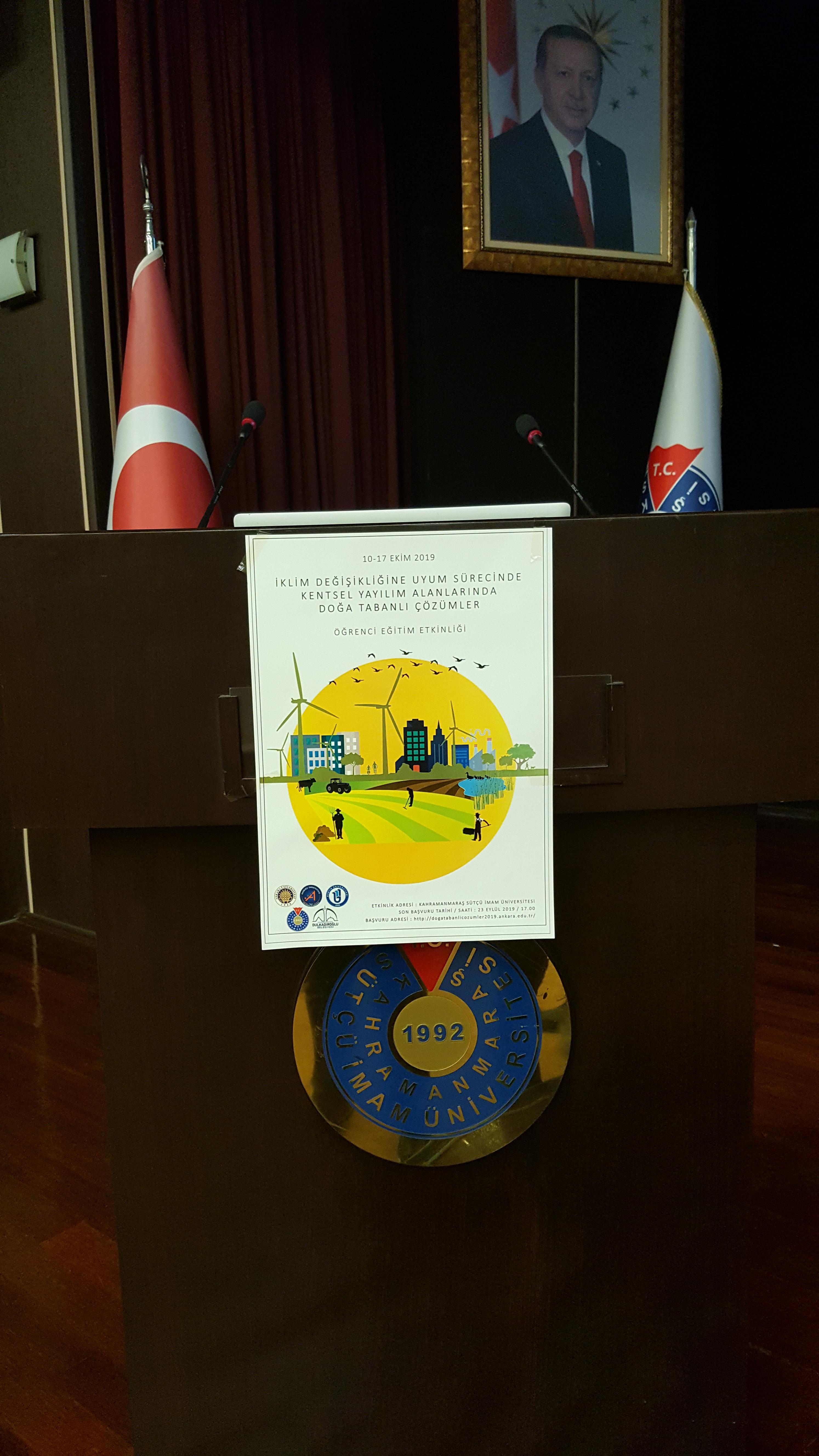 Ankara Üniversitesi Ziraat Fakültesi Peyzaj Mimarlığı koordinatörlüğünde Kahramanmaraş Sütçü İmam Üniversitesi(KSÜ) Orman Fakültesi, Bartın Orman Fakültesi Peyzaj Mimarlığı Bölümü ve Akdeniz Üniversitesi Mimarlık Fakültesi Peyzaj Mimarlığı Bölümü işbirliği ile Türkiye Bilimsel ve Teknolojik Araştırma Kurumu (TÜBİTAK) 2237-A programı desteği kapsamında ''İklim Değişikliği Uyum Sürecinde Kentsel Yayılım Alanlarında Doğa Tabanlı Çözümler” eğitim etkinliği düzenlendi.