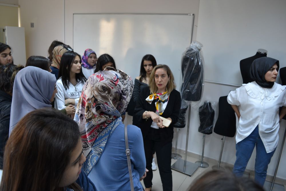 Ziyaretin diğer kısmında Tekstil ve Moda Tasarımı Bölümü hakkında bilgi verilerek Moda Tasarımı Atölyesi, Baskı Tasarımı Atölyesi, Drapaj Atölyesi, Moda Resmi Atölyesi ve Bilgisayar Laboratuvarı öğrencilere tanıtılmıştır.