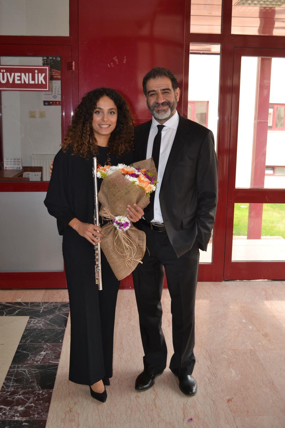 Büyük beğeni toplayan konserin sonunda öğretim elemanlarına çiçek takdim edildi.