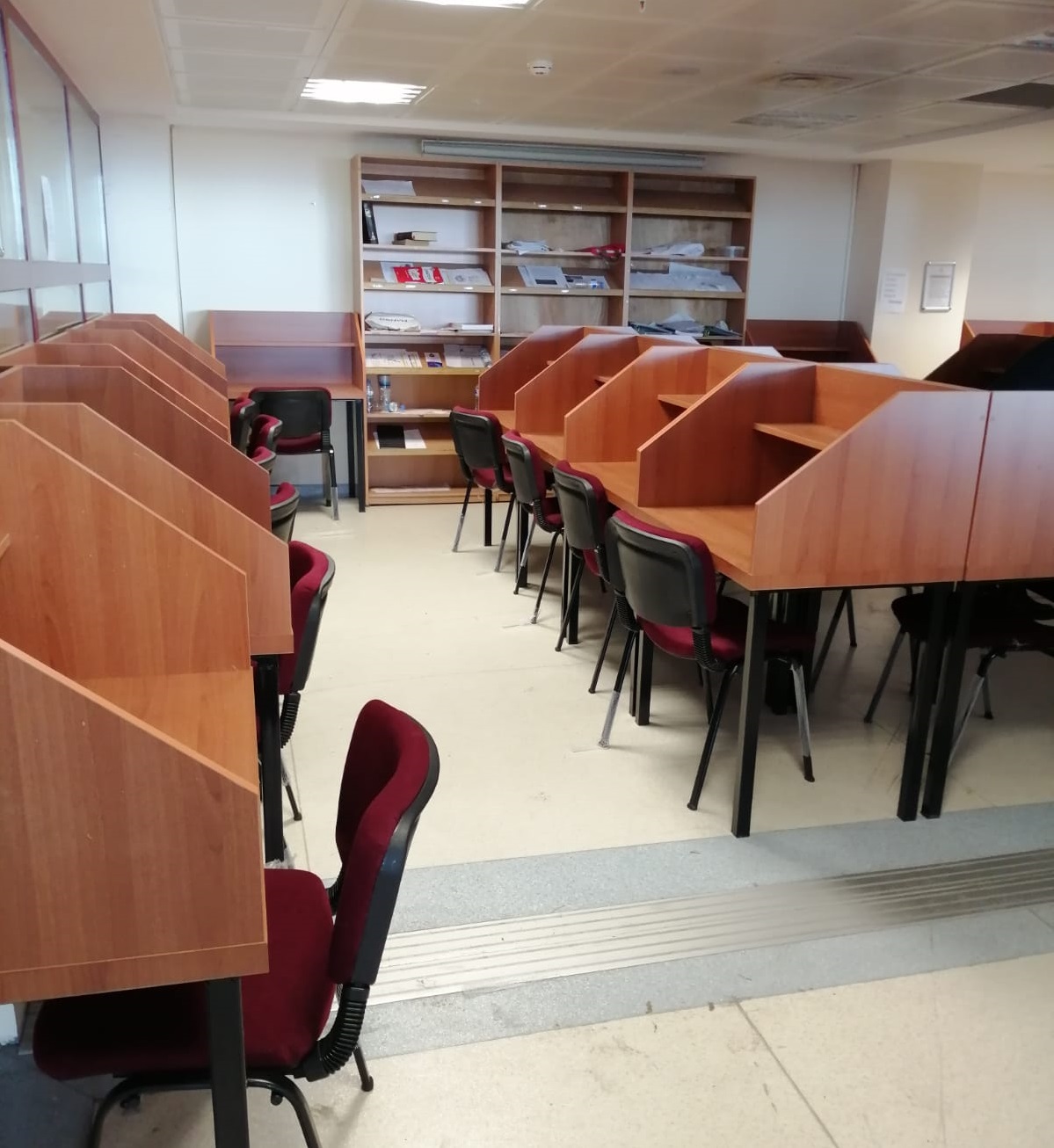 Fakültemizin Kütüphane ve Çalışma Salonlarında iyileştirme ve geliştirme çalışmaları devam ediyor. Çalışmalar kapsamında; İdari Bina 3. Kattaki Salonun kapasitesi artırılırken Hastane 6. Katta yeni bir Çalışma Salonu oluşturulmuştur.