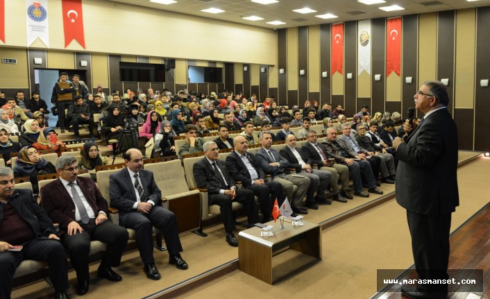 Kahramanmaraş Sütçü İmam Üniversitesi (KSÜ) Akademi İlahiyat Öğrenci Topluluğu tarafından Emekli Vali Adnan Yılmaz’ın konuşmacı olarak katıldığı "Bilimler Tarihi Dostu Prof. Dr. Fuat Sezgin'i Anlamak" konulu konferans düzenlendi.