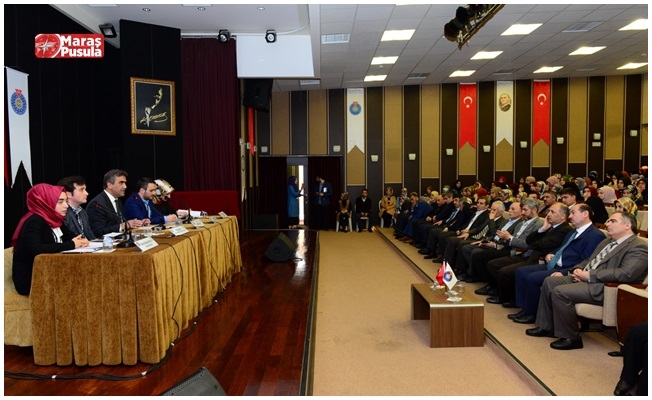 Kahramanmaraş Milletvekili İmran Kılıç, Rektör Prof. Dr. Niyazi Can, Rektör Yardımcısı Prof. Dr. İbrahim Taner Okumuş, İlahiyat Fakültesi Dekanı Prof. Dr. Mehmet Akif Özdoğan, Ziraat Fakültesi Dekanı Prof. Dr. Cafer Gençoğlan, Mühendislik ve Mimarlık Fakültesi Dekanı Prof. Dr. Mehmet Ünsal, Eğitim Fakültesi Dekanı Prof. Dr. Nail Yıldırım, Pazarcık Meslek Yüksekokulu Müdürü Dr. Öğretim Üyesi Mehmet Fetih Yanardağ, Genel Sekreter Doç. Dr. Fatih Tiyek, öğretim elemanları ve çok sayıda öğrencinin katılımıyla Cahit Zarifoğlu Konferans Salonunda gerçekleştirilen konferansın açılış konuşmasını Kahramanmaraş Milletvekili İmran Kılıç yaptı. İlim, irfan ve medeniyetin bir milletin değil bütün insanlığın malı olduğuna dikkat çeken Milletvekili Kılıç, bugünkü çağdaş medeniyetin batının Müslümanlardan aldığı bilgiyle gelişen bir medeniyet olduğunu söyledi.