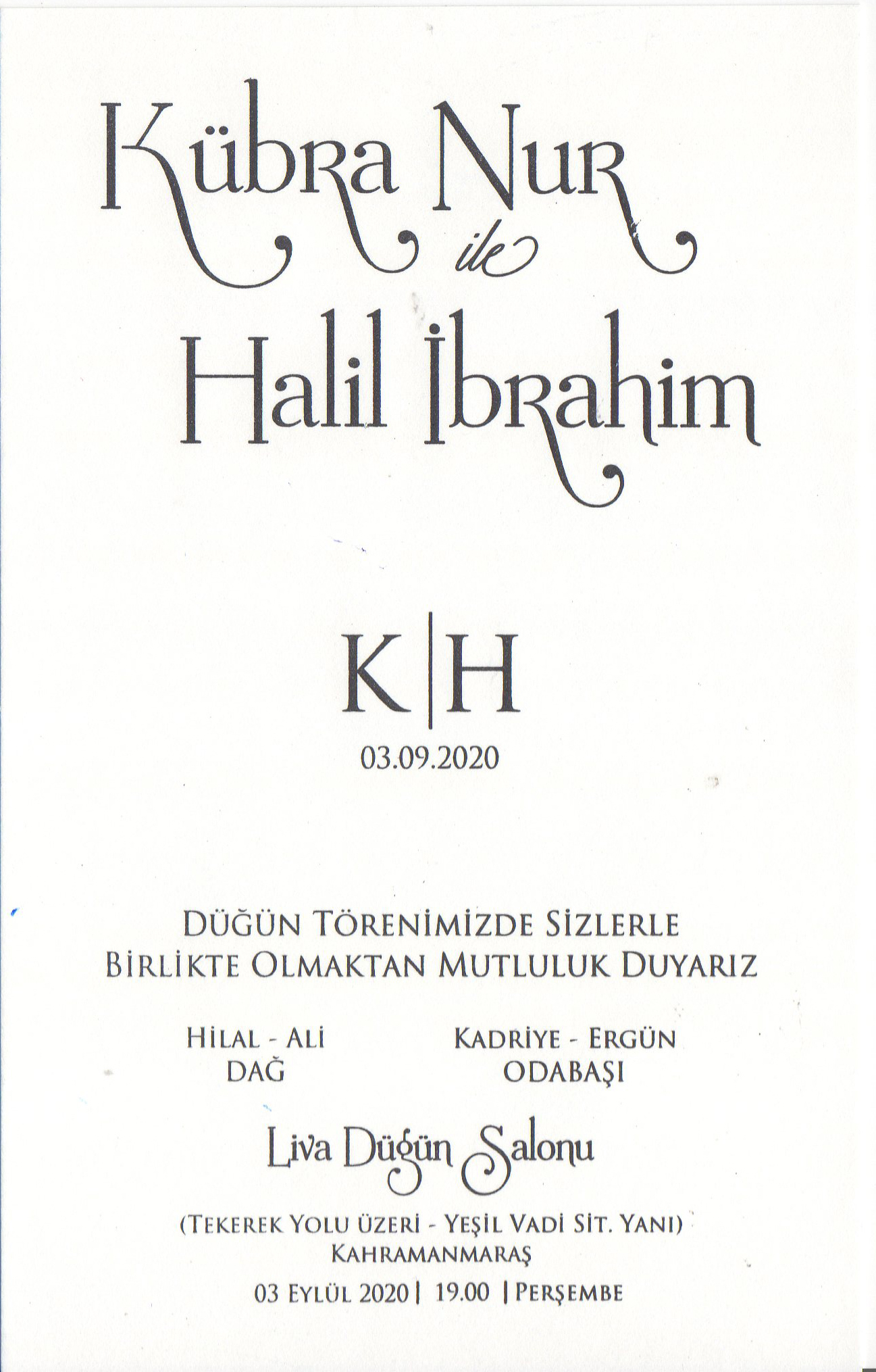 Öğrenci İşleri Daire Başkanlığı Şube Müdürü Ali DAĞ'ın kızı Kübra Nur DAĞ 03 Eylül 2020 Perşembe günü saat 19.00'da Liva Düğün Salonunda düzenlenecek törenle dünya evine girecektir. DAĞ ailesini ve genç çifti tebrik eder, mutluluklar dileriz.
