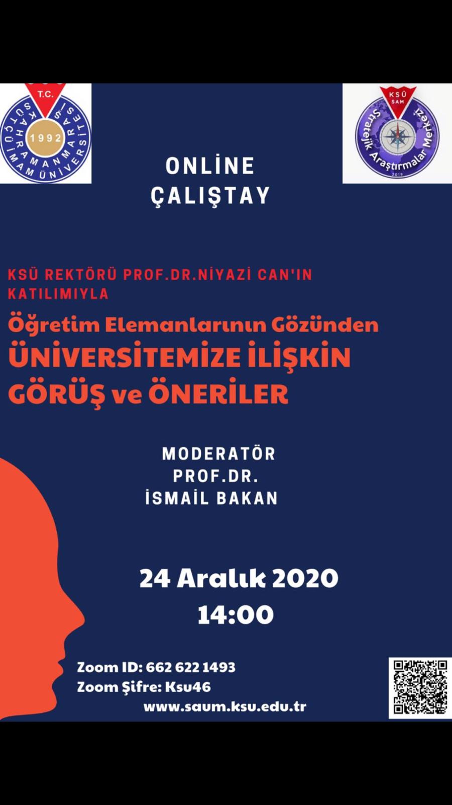Online Çalıştay "KSÜ Rektörü Prof. Dr. Niyazi CAN'ın Katılmıyla Öğretim Elemanlarının Gözünden Üniversitemize İlişkin Görüş ve Öneriler