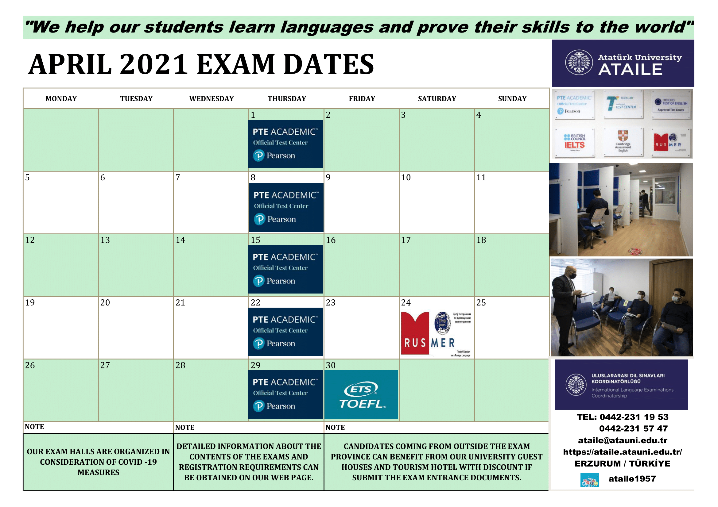 Atatürk Üniversitesi - Uluslararası Sınav Takvimi