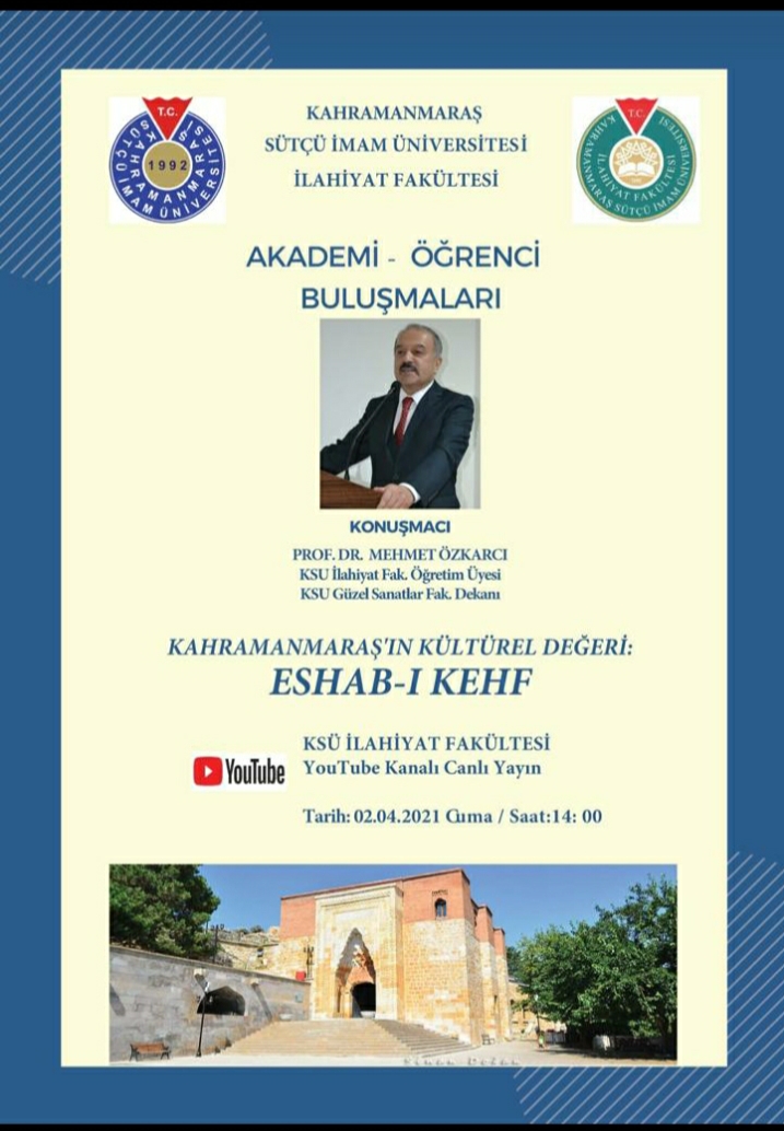 Akademi-Öğrenci Buluşmalarında Bu Hafta Konuşmacı: Prof Dr. Mehmet ÖZKARCI "Kahramanmaraş'ın Kültürel Değeri: Eshab-ı Kehf" Konusuyla İlahiyat Youtube Kanalında