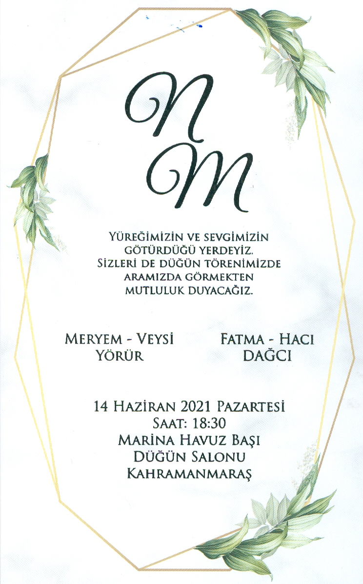Bilgi İşlem Daire Başkanlığı personeli Hacı DAĞCI'nın oğlu Mustafa DAĞCI14 Haziran 2021Pazartesi günü saat 18.30'da Marina Havuz Başı Düğün Salonunda düzenlenecek törenle dünya evine girecektir. DAĞCI ailesini ve genç çifti tebrik eder, mutluluklar dileriz.