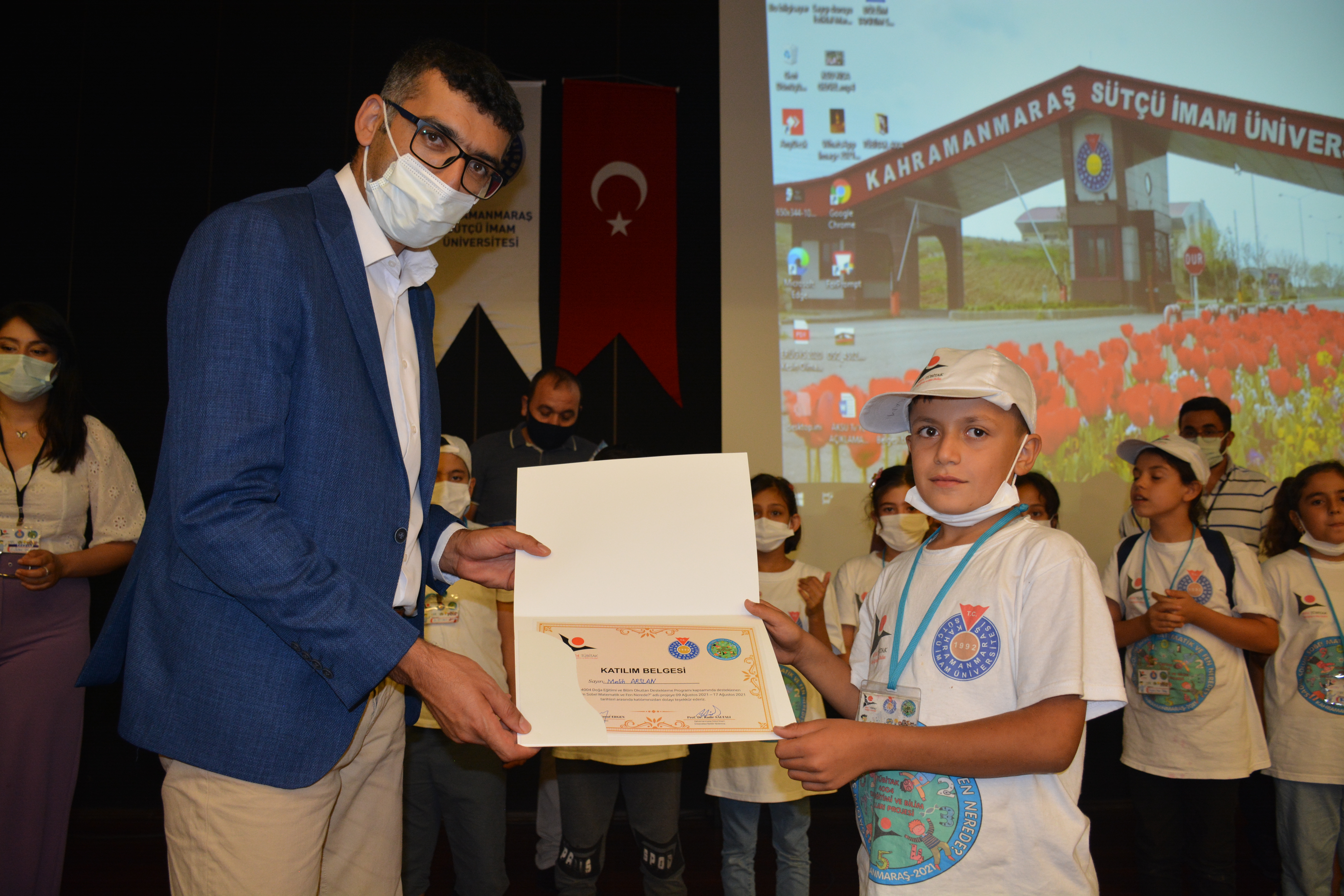 Kahramanmaraş Sütçü İmam Üniversitesi (KSÜ) Temel Eğitim Bölümü Sınıf Öğretmenliği Programı Doktor Öğretim Üyesi Yusuf Ergen tarafından 4004 TÜBİTAK Doğa Eğitimi ve Bilim Okulları Destekleme Programı kapsamında yürütülen “Sağım Solum Sobe! Matematik ve Fen Nerede?“ isimli proje, Rektör Prof. Dr. Niyazi Can’ın katılımlarıyla Cahit Zarifoğlu Konferans Salonunda düzenlenen kapanış etkinliği ile sona erdi.