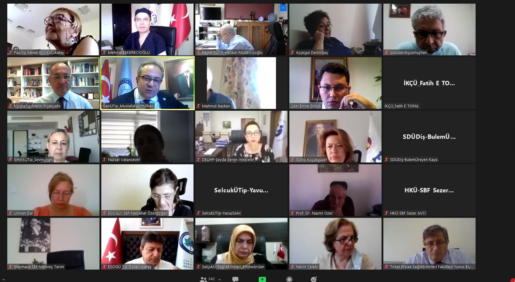 Üniversitelerarası Kurul Başkanlığı - Tıp Sağlık Bilimleri Eğitim Konseyi (ÜAK-TSEK) 2021/6 nolu toplantısı 23.08.2021 Pazartesi günü saat 10.30 da çevrimiçi olarak gerçekleştirdi. Üniversitelerin Tıp, Diş Hekimliği, Eczacılık, Sağlık Bilimleri, Hemşirelik, Fizyoterapi ve Rehabilitasyon, Veteriner Fakültesi Dekanlarının katılım sağladığı toplantıya Fakültemiz Dekanı Prof. Dr. Mehmet BEKERECİOĞLU katılım sağladı.