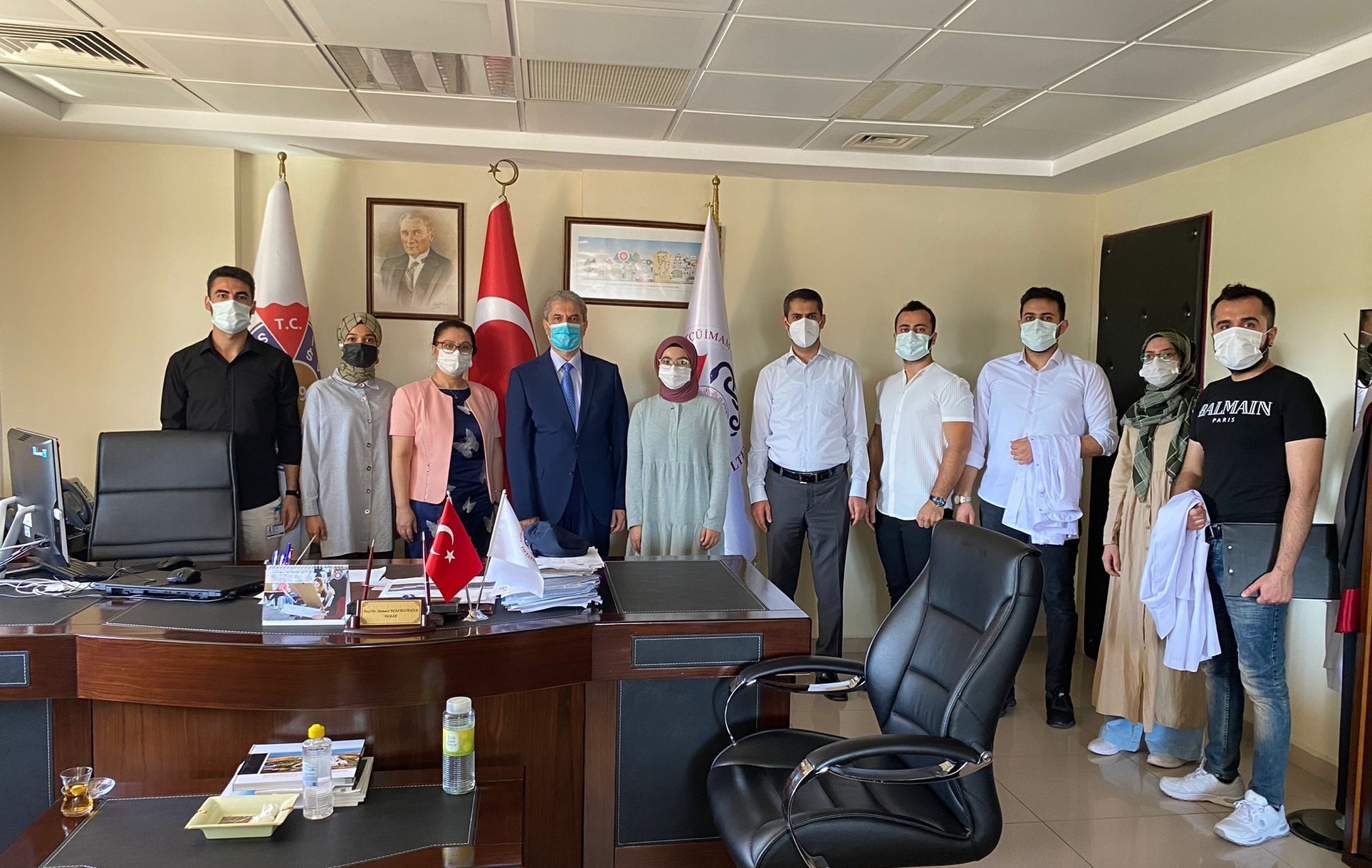 KSÜ Tıp Öğrenci Kongresi Organizasyon Komitesi öğrencileri Fakülte Yönetimini 14 Eylül 2021 Salı günü dekanlık makamında ziyaret ettiler.