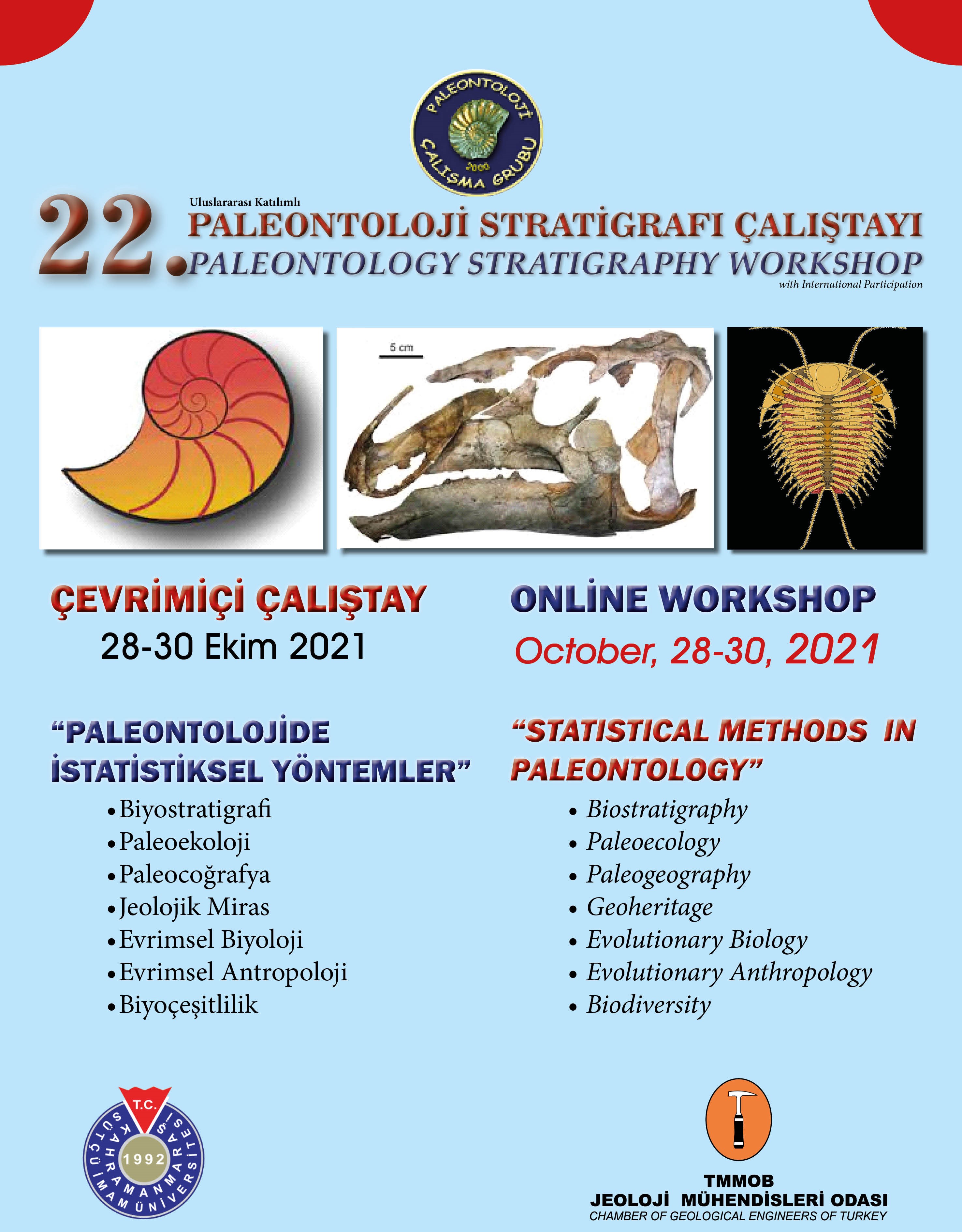 Başkanlığını, Üniversitemiz Mühendislik ve Mimarlık Fakültesi Jeoloji Mühendisliği Bölümü Öğretim Üyesi Prof. Dr. Güldemin Darbaş'ın yaptığı Uluslararası Katılımlı 22. Paleontoloji Stratigrafi Çalıştayı 28-30 Ekim 2021 tarihleri arasında "çevrimiçi" olarak gerçekleştirilecek.