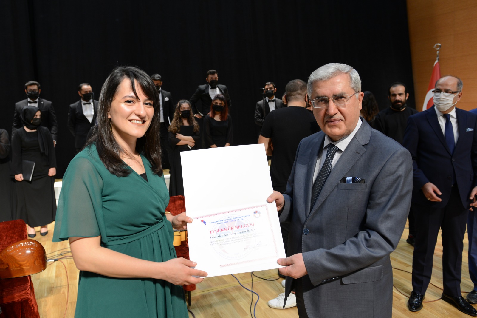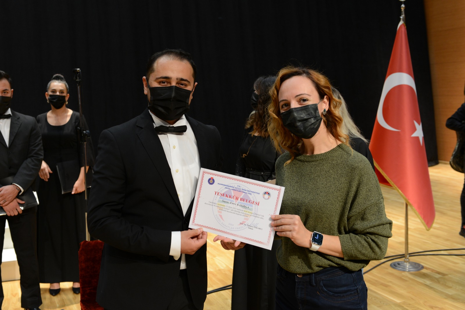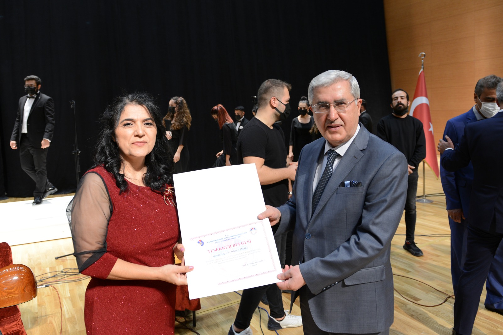 Konser programının sonunda Rektör Prof. Dr. Niyazi Can ve protokol üyeleri tarafından katkı sunanlara teşekkür belgeleri verildi.