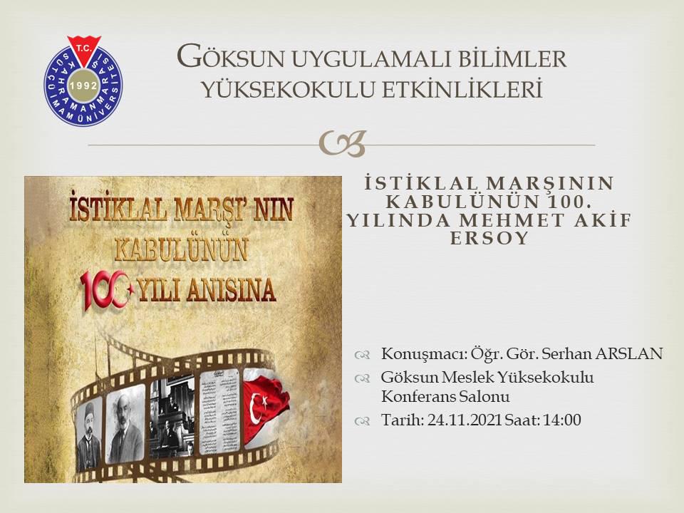 Göksun Uygulamalı Bilimler Yüksekokulu: İstiklal Marşı'nın Kabulünün 100.Yyılında Mehmet Akif Ersoy Konulu Konferans