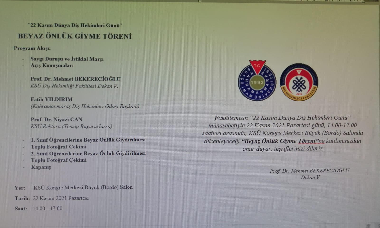 22 Kasım Dünya Diş Hekimleri Günü Beyaz Önlük Giyme Töreni