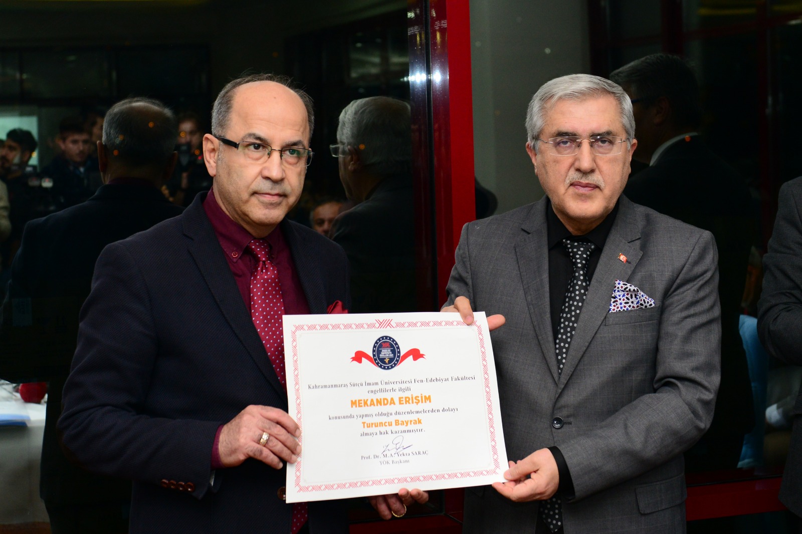 Üniversitemizin engelsiz üniversite olma yolundaki çalışmalarının artarak devam ettiğini ifade eden Rektör Can, daha önce de Kahramanmaraş Valiliği himayesinde Aile ve Sosyal Hizmetler İl Müdürlüğü ve Kahramanmaraş Büyükşehir Belediye Başkanlığı işbirliğinde düzenlenen ‘Engelsiz Sivil Toplum Buluşması’ programı kapsamında da üniversitemiz Rektörlük Hizmet Binasına ‘Erişilebilirlik Sertifikası’nın kendilerine Kültür ve Turizm Eski Bakanı Mahir Ünal tarafından verildiğini hatırlattı.
