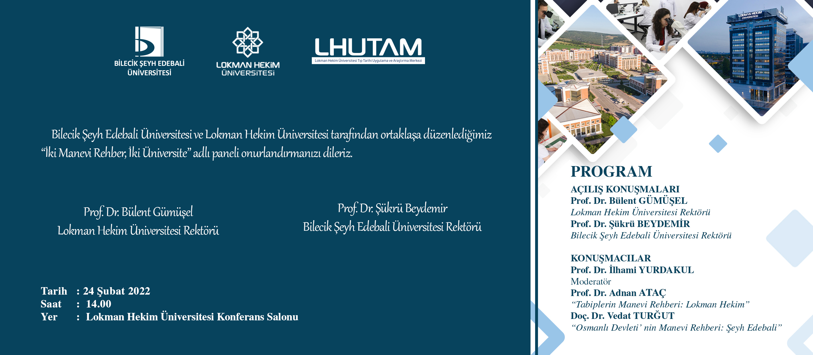 Lokman Hekim Ünv. - "İki Manevi Rehber İki Üniversite" Paneli Daveti