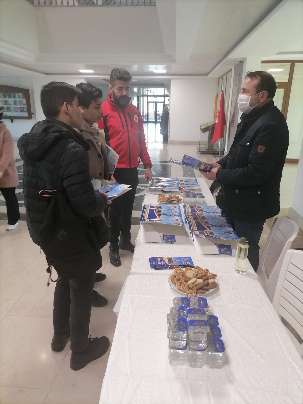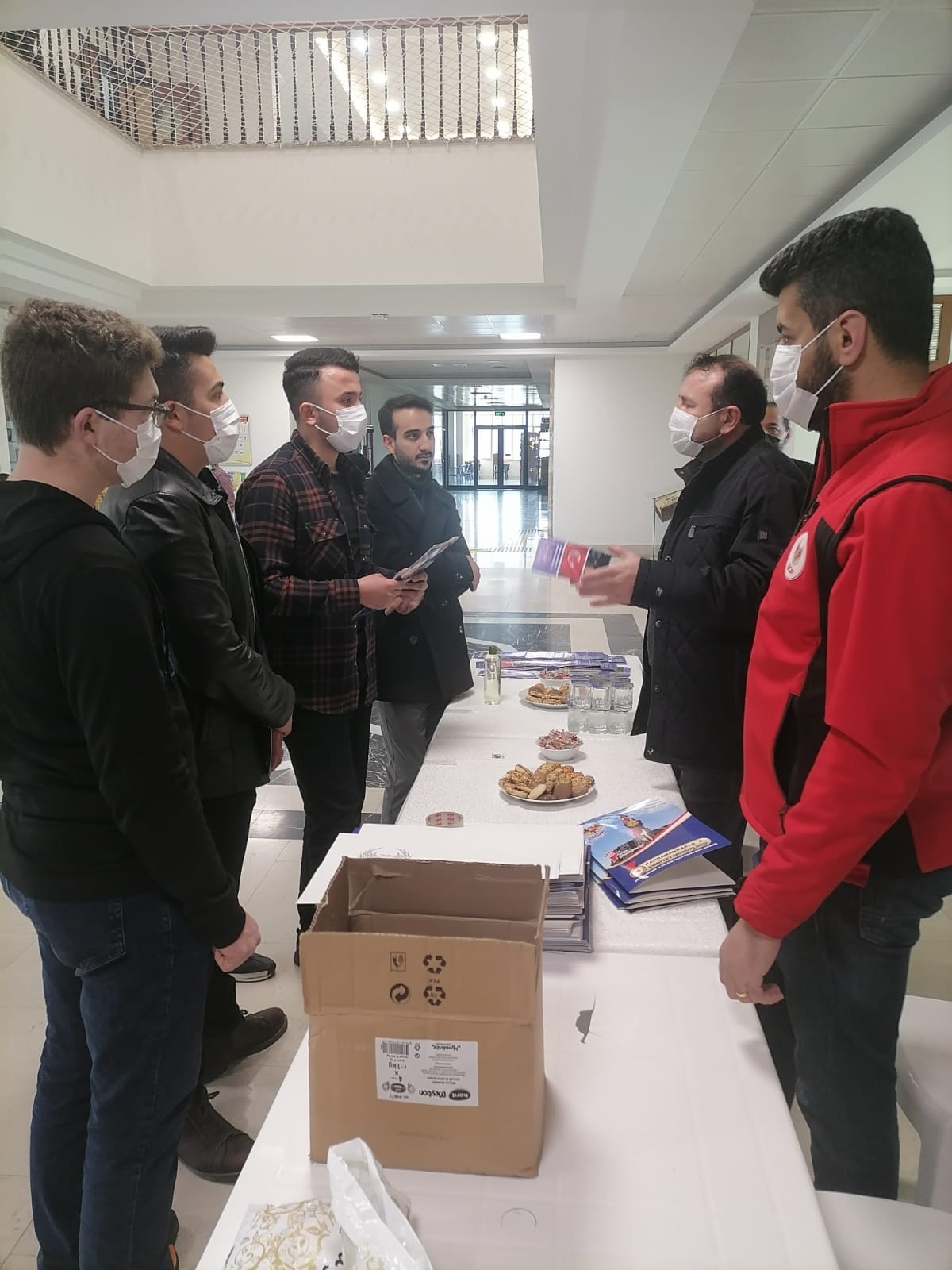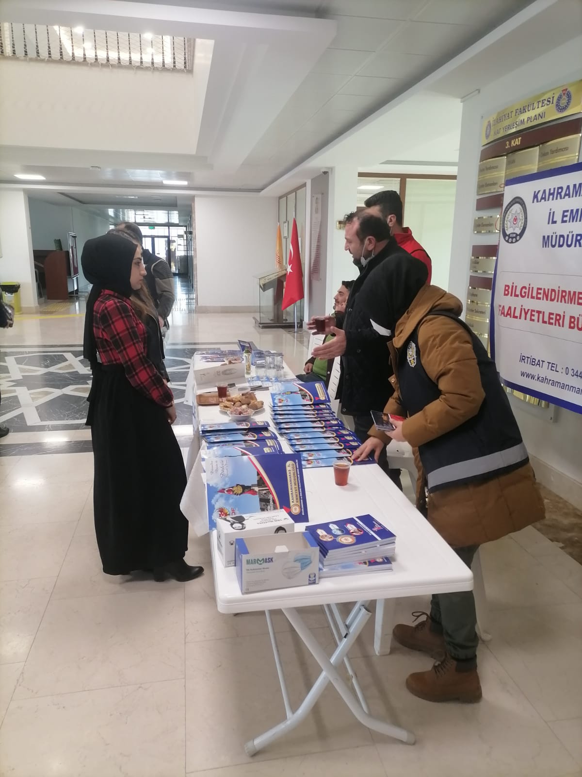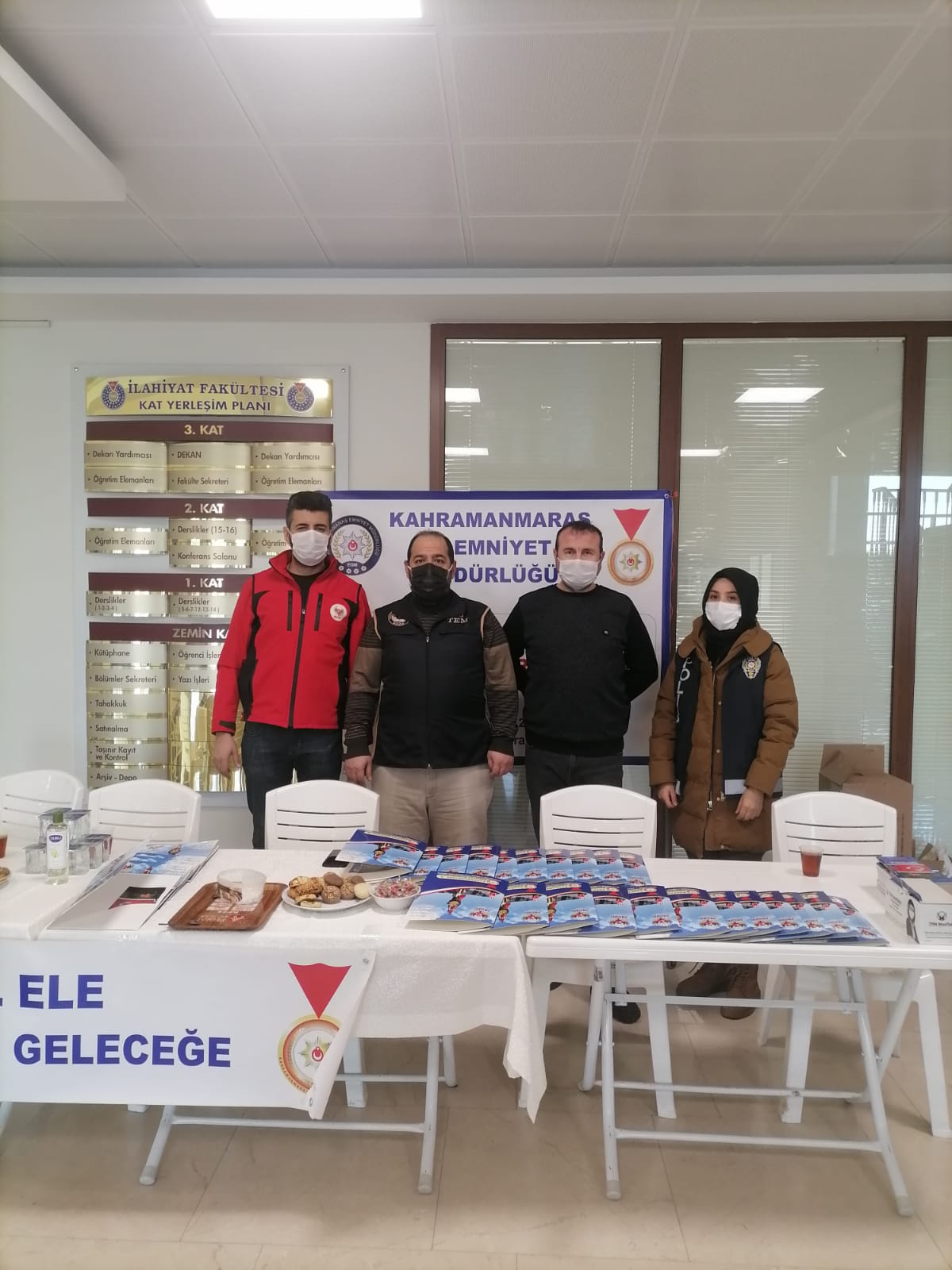 İlahiyat Fakültesi girişinde stant açan Kahramanmaraş İl Emniyet Müdürlüğü ekipleri gençlerin suça yöneliminin engellenmesi sağlamak amacıyla dini istismar eden terör örgütleri hakkında öğrencilere bilgi verdi.