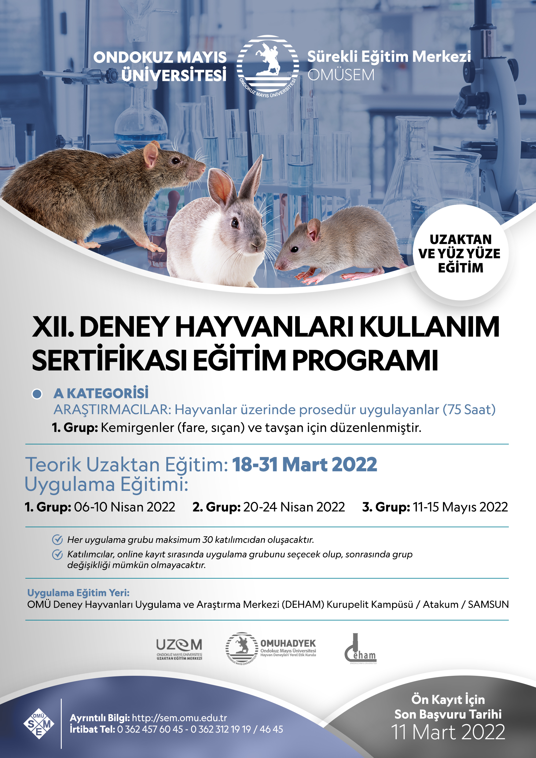Ondokuz Mayıs Ünv. - “XII. Deney Hayvanları Kullanım Sertifikası Eğitim Programı