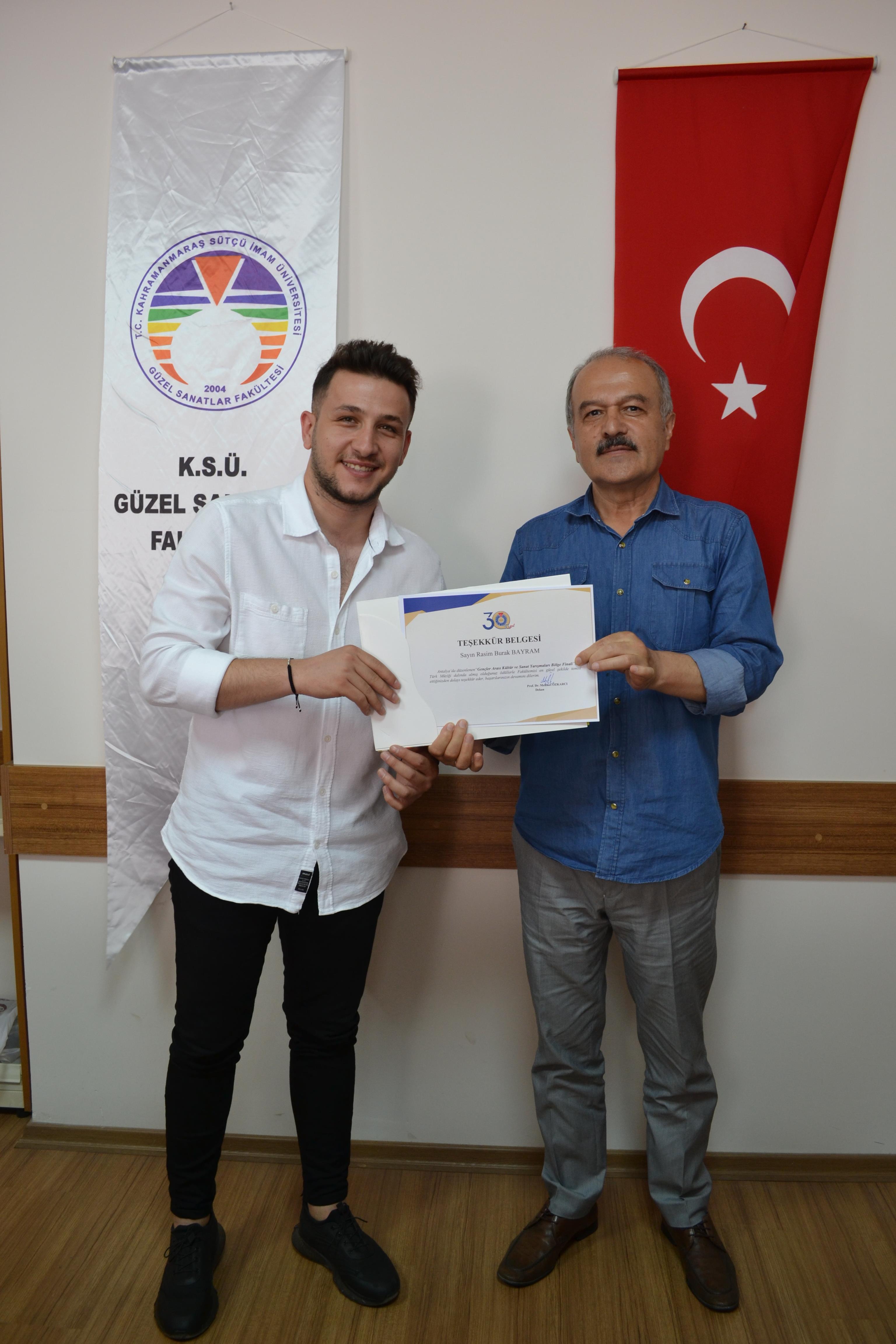 Güzel Sanatlar Fakültesi Dekanı Prof. Dr. Mehmet ÖZKARCI tarafından ulusal yarışmalarda ödül alarak fakültemizi ve üniversitemizi güzel bir şekilde temsil eden başarılı öğrencilerine teşekkür belgesi verildi.