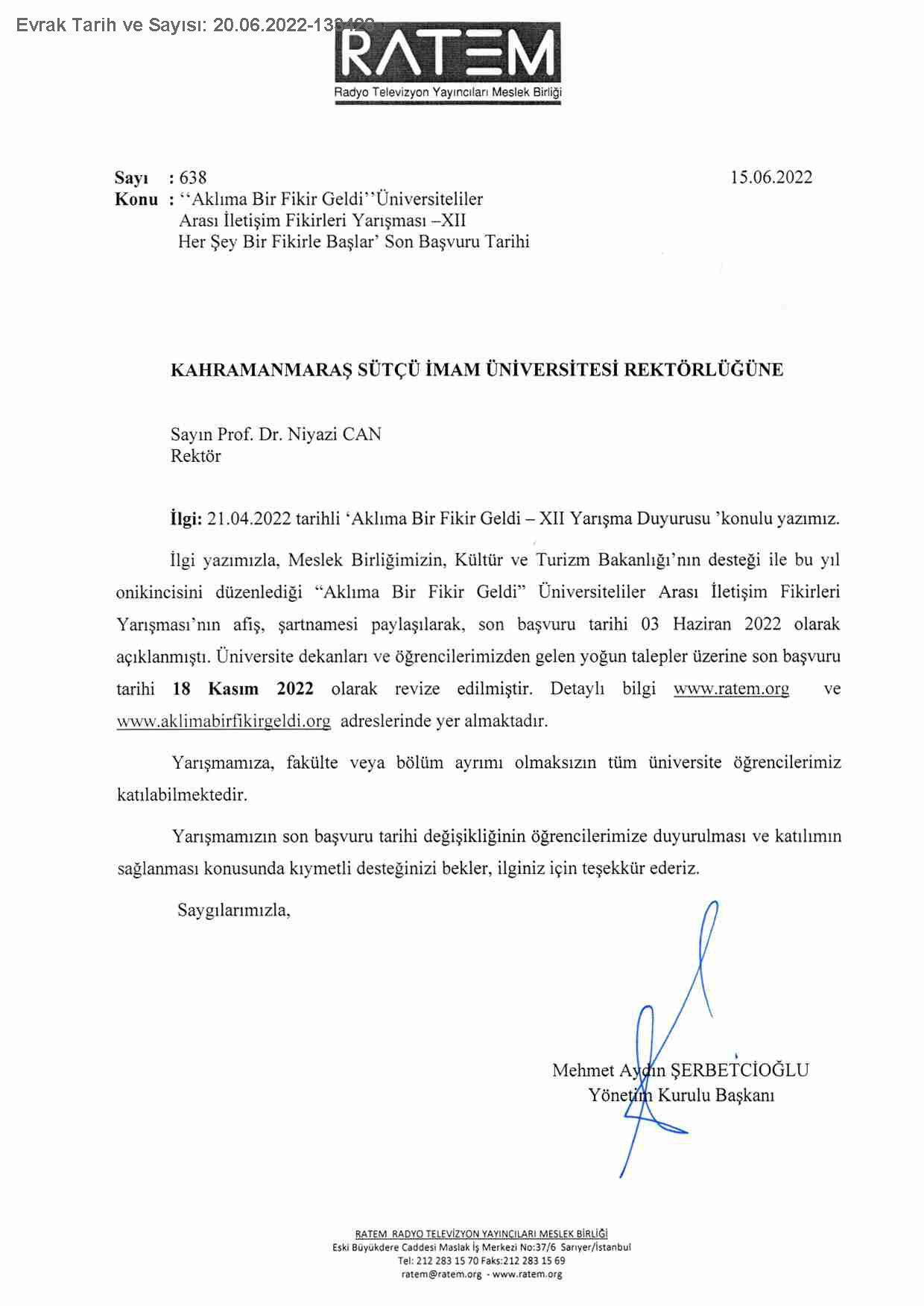 RATEM - "Aklıma Bir Fikir Geldi" Üniversiteliler Arası İletişim Fikirleri Yarışması -XII