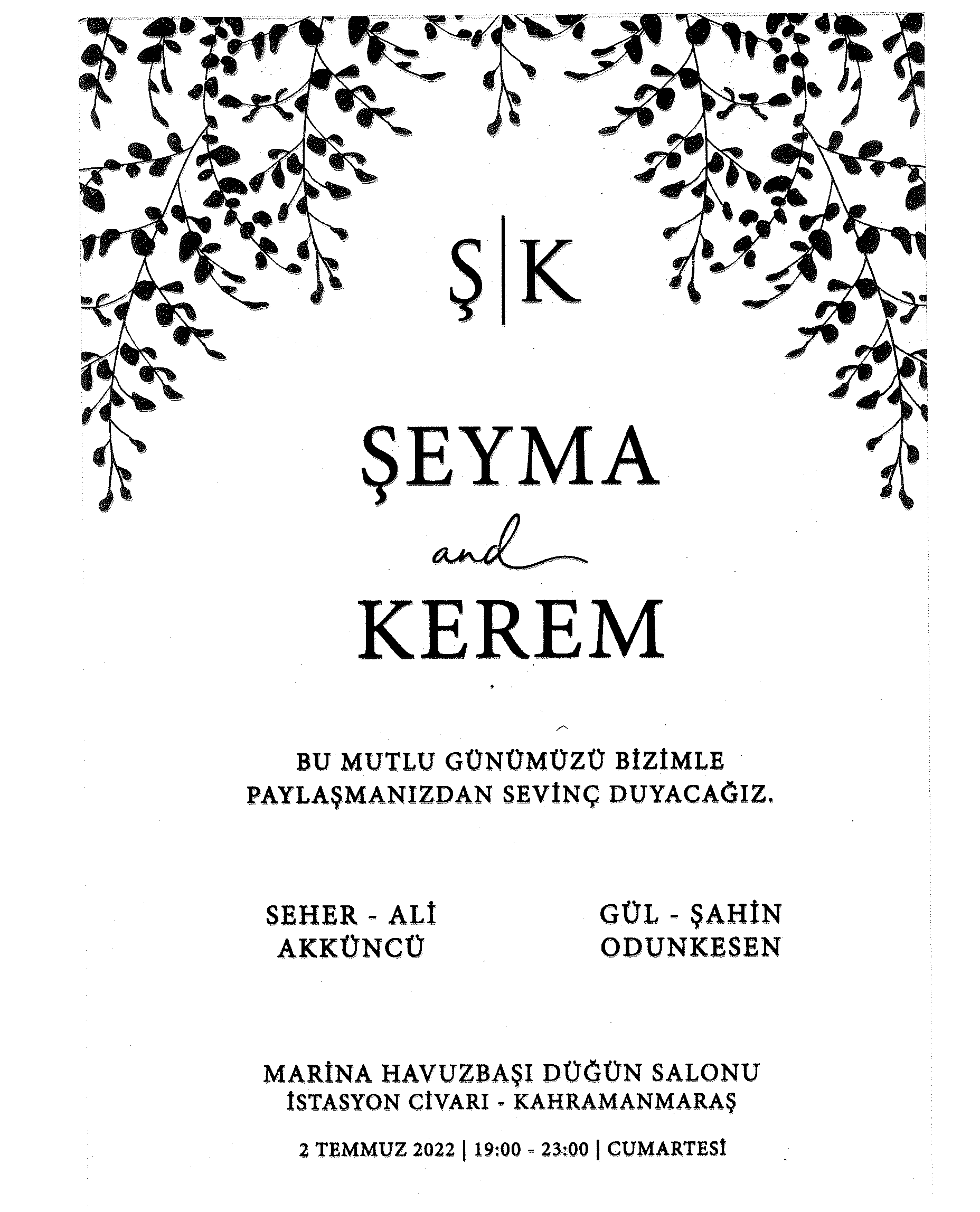 Teknik Bilimler Meslek Yüksekokulu personeli Tekniker Ali AKKÜNCÜ’nün kızı 2 Temmuz 2022 Cumartesi günü saat 19.00-23.00 arası Marina Havuzbaşı Düğün Salonunda düzenlenecek törenle dünya evine girecektir.
