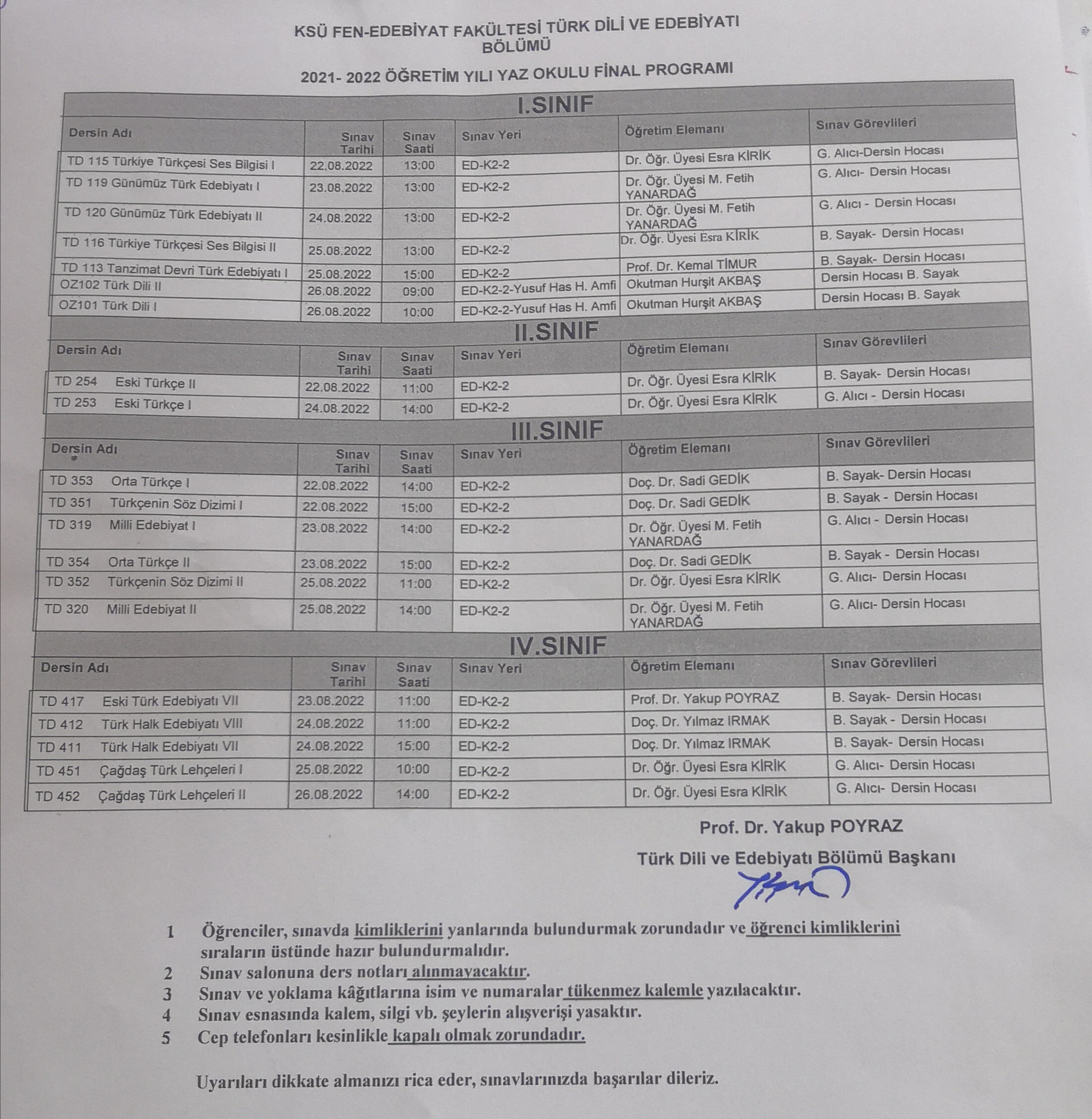 Yaz Okulu Final Sınavı Duyurusu