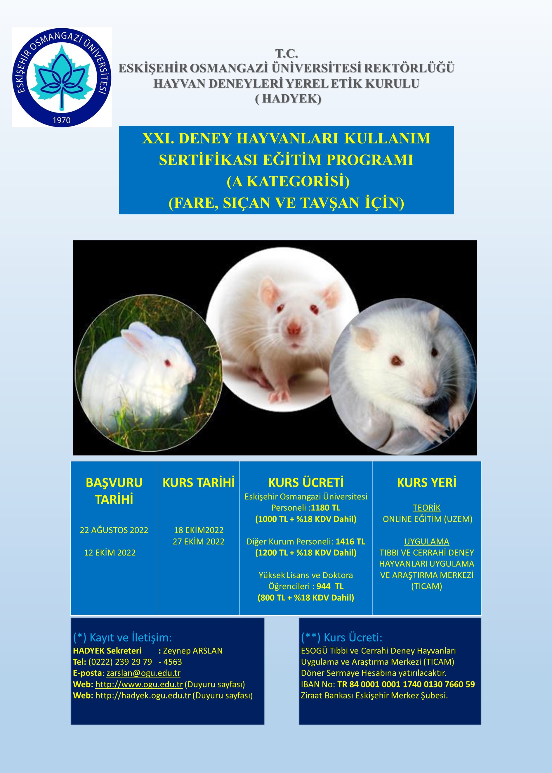 Eskişehir Osmangazi Ünv. - Deney Hayvanları Kullanımı ile İlgili Sertifikalı Eğitim Kursu