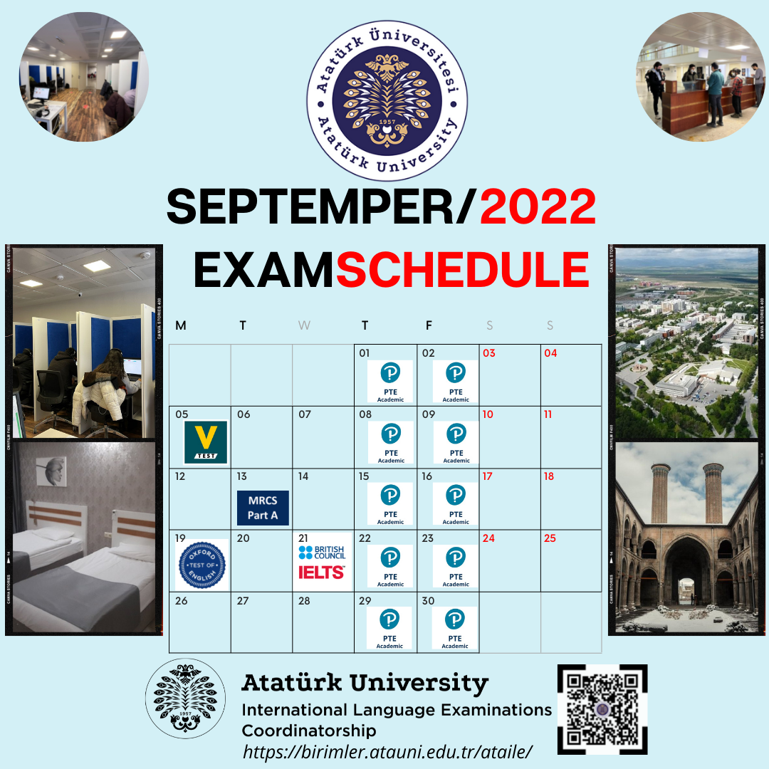 Atatürk Ünv. - Eylül 2022 Uluslararası Sınav Takvimi