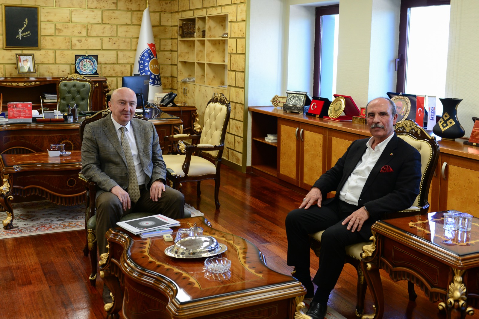 Kahramanmaraş Ticaret ve Sanayi Odası (KMTSO) Başkanı Şahin Balcıoğlu ve Yönetim Kurulu Üyeleri, Kahramanmaraş Sütçü İmam Üniversitesi (KSÜ) Rektörü Prof. Dr. Alptekin Yasım’a hayırlı olsun ziyaretinde bulundu.