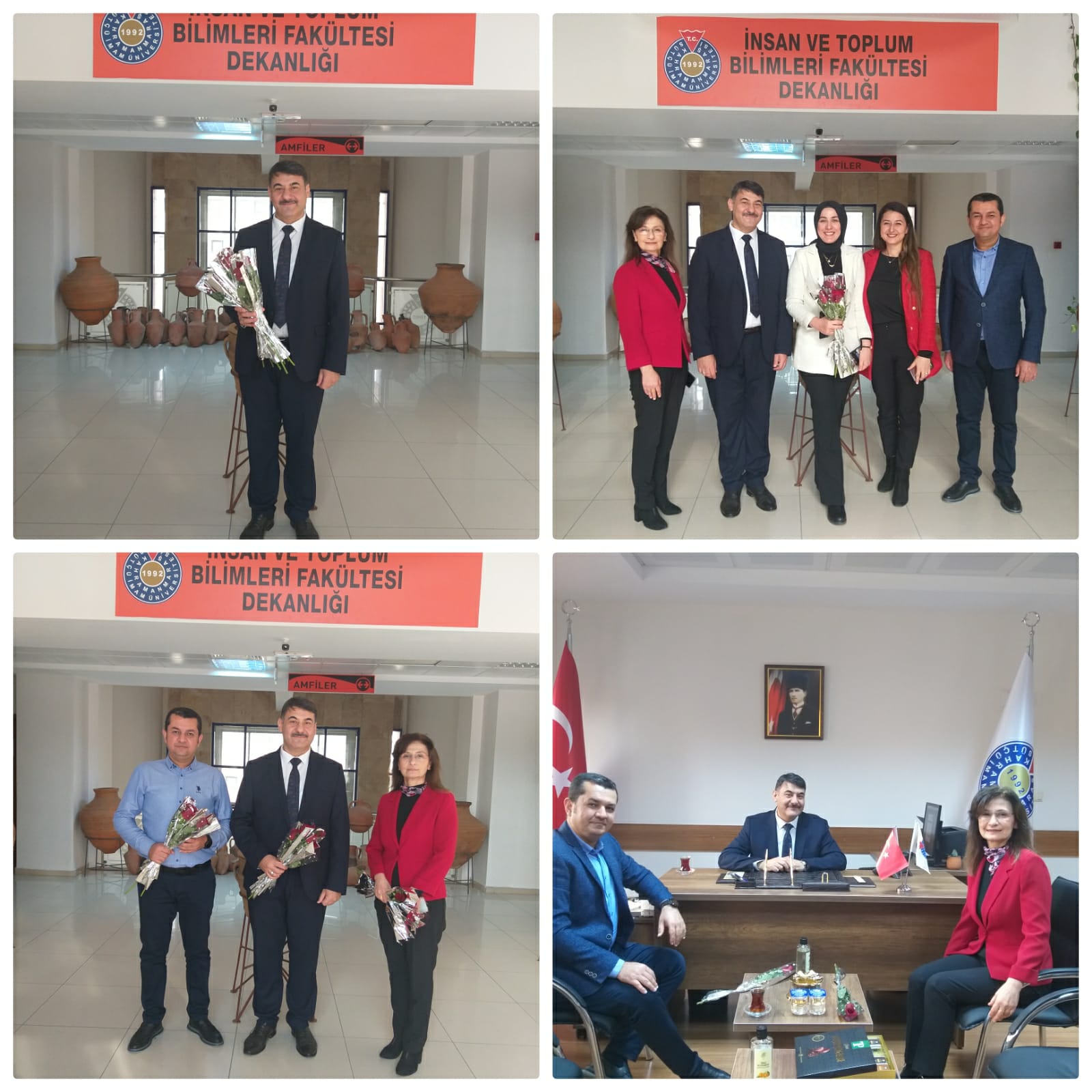 Çalışma ofislerinde yapılan tebrik ziyaretinde Dekan Yardımcıları Doç. Dr. Burak TELLİ ve Doç. Dr. Nadire KARADEMİR Dekanımıza refakat ettiler.