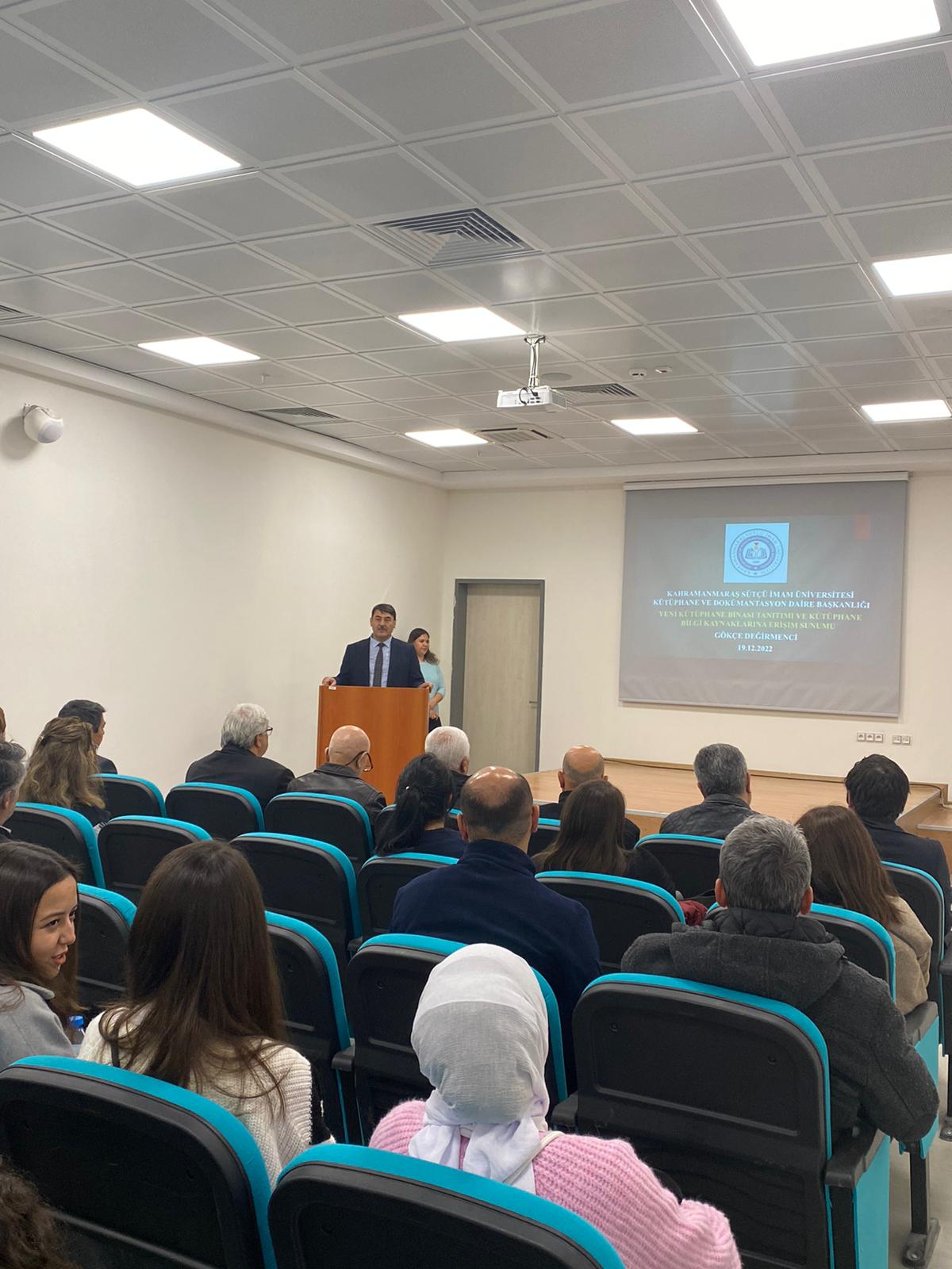 Fakültemiz akademik personeli ve öğrencileri ile Üniversitemiz kütüphanesi ziyaret edildi. Ziyarette Dekanımız Prof. Dr. Yakup POYRAZ, Dekan Yardımcılarımız Doç. Dr. Burak TELLİ ve Doç. Dr. Nadire KARADEMİR, Fakültemiz akademik personeli ve öğrencilerimiz yer aldılar. Kütüphane ziyareti, Kütüphane ve Dokümantasyon Daire Başkanı Mehmet BİLMEN’ in karşılamasıyla başladı ve Kütüphane birimlerinin gezilmesiyle devam etti. Kütüphane Daire Başkanı BİLMEN, Kütüphane hakkında detaylı bilgiler vererek ziyaretten duyduğu memnuniyeti dile getirdi. Dekanımız Prof. Dr. Yakup POYRAZ, Fakültemiz bölümlerini yakından ilgilendiren LexiQamus Osmanlı Türkçesi Kelime Çözücü programı, LEHÇEDİZ Sözlüğü, Piri keşif aracı ve AYEUM video online eğitim veritabanlarının kütüphanemize kazandırılması konusunda gayretlerinden dolayı BİLMEN’ e teşekkür etti. Daire Başkanı BİLMEN de ziyaretten duyduğu memnuniyeti dile getirdi. Ziyaret sonunda akademik personel ve öğrencilerimiz ziyaret ve kütüphane tanıtımından oldukça faydalandıklarını ifade ettiler.