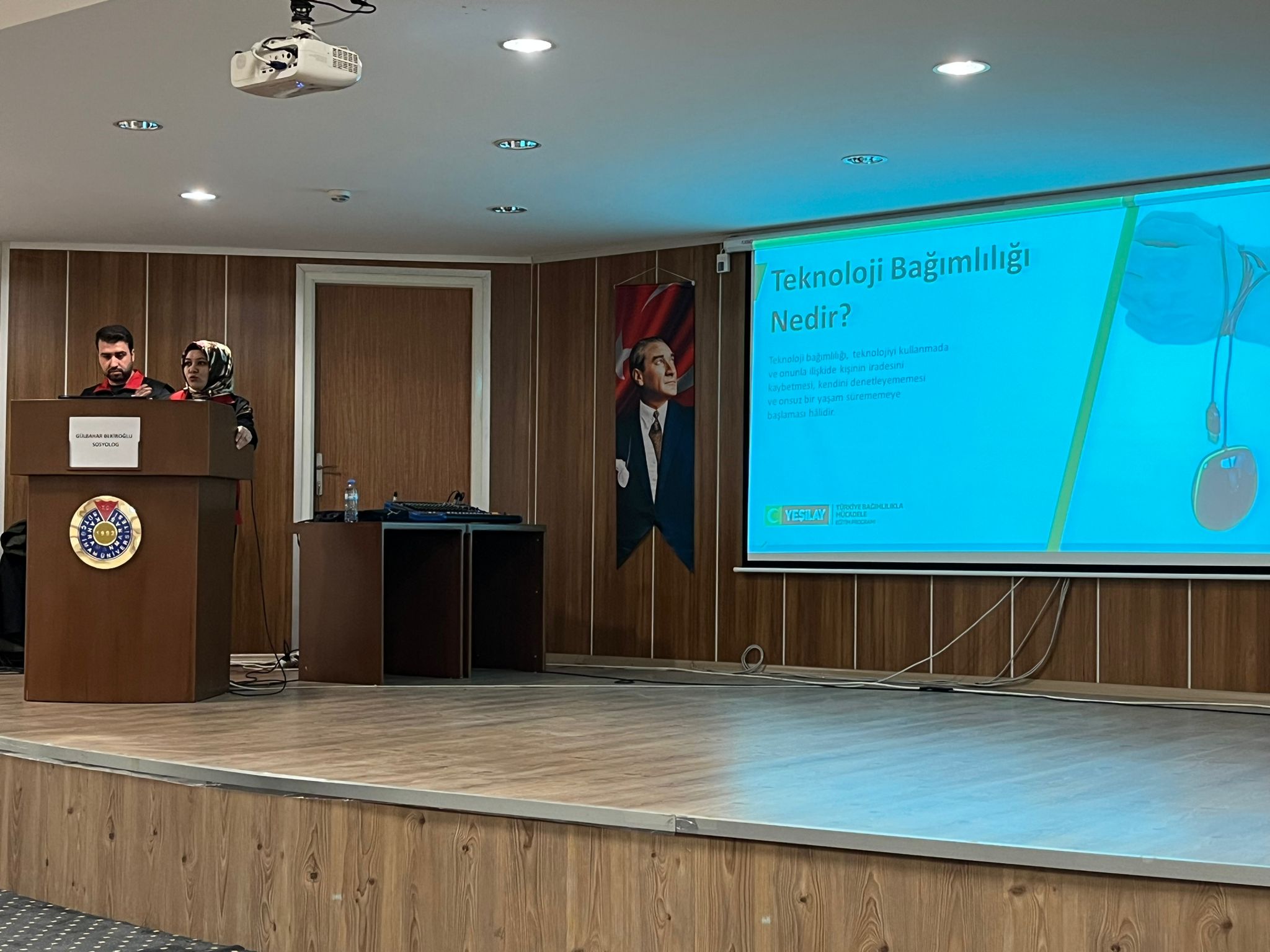 Sosyolog Gülbahar Bekiroğlu tarafından gerçekleştirilen sunumda, teknoloji bağımlılığı, internetin zararlı kullanımı hakkında bilgiler verilerek teknoloji bağımlılığıyla mücadele, teknoloji ve internetin bilinçli kullanımı üzerine öğrencilerimize tavsiyelerde bulunulmuştur. Sunum ardından öğrencilerle bir soru cevap etkinliği gerçekleştirilmiş ve müdür yardımcımız Öğr. Gör. Semih ERTAN'ın teşekkür belgesi takdimi ardından etkinlik sona ermiştir.