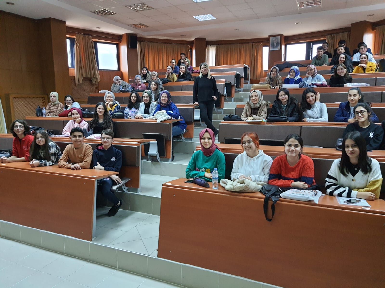 Fakültemizde görevli Dr. Öğr. Üyesi Fatma Nur AKTAŞ'ın yürütmekte olduğu "Özel Eğitim ve Kaynaştırma" ve "Mantıksal Akıl Yürütme" dersleri kapsamında, Kahramanmaraş Nuri Pakdil Bilim ve Sanat Merkezi Matematik Öğretmeni Sn. Özlem KAHRAMAN ve öğrencileri Efe Talha PALABIYIK, Uğur TEKİN ve Esad Erdem DİKEN, İlköğretim Matematik Öğretmenliği 4.sınıf öğrencilerimiz ile bir araya gelmiştir. Konuk öğretmen ve öğrenciler, TÜBİTAK 2204B Ortaokul Öğrencileri Araştırma Projeleri Yarışmasına katılarak Türkiye 3.sü oldukları projeleri Altıgen-Mors Petek Şifreleme Ürünleri ile akıl yürütme ve proje süreçlerini konu alan bir söyleşi gerçekleştirdiler. Etkinliğin düzenlenmesinde emeği geçen öğretim üyemiz, Sn. Özlem KAHRAMAN ve öğrencileri ile etkinliğe katılım sağlayan öğrencilerimize teşekkür eder, esenlikler dileriz.