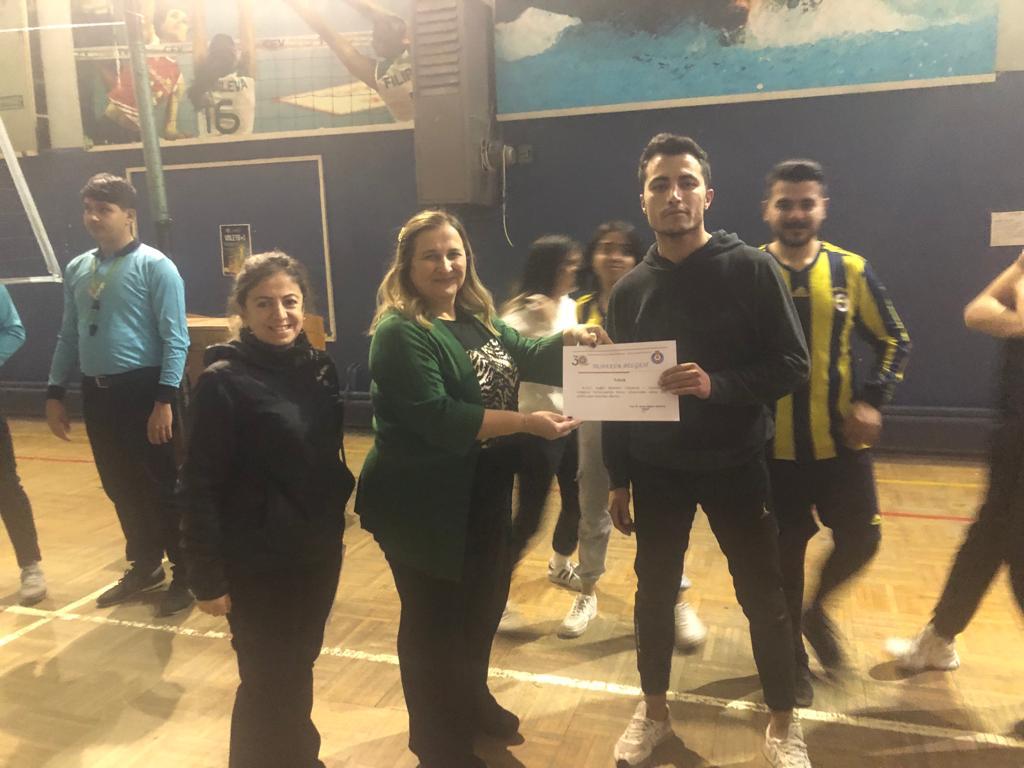 K.S.Ü. Sağlık Bilimleri Fakültesi 1. Geleneksel Voleybol Turnuvasında Fakültemiz Dekanı Prof. Dr. Deniz TUNCEL, birinci olan Sağlık Hizmetleri MYO öğrencilerine kupa verdi.