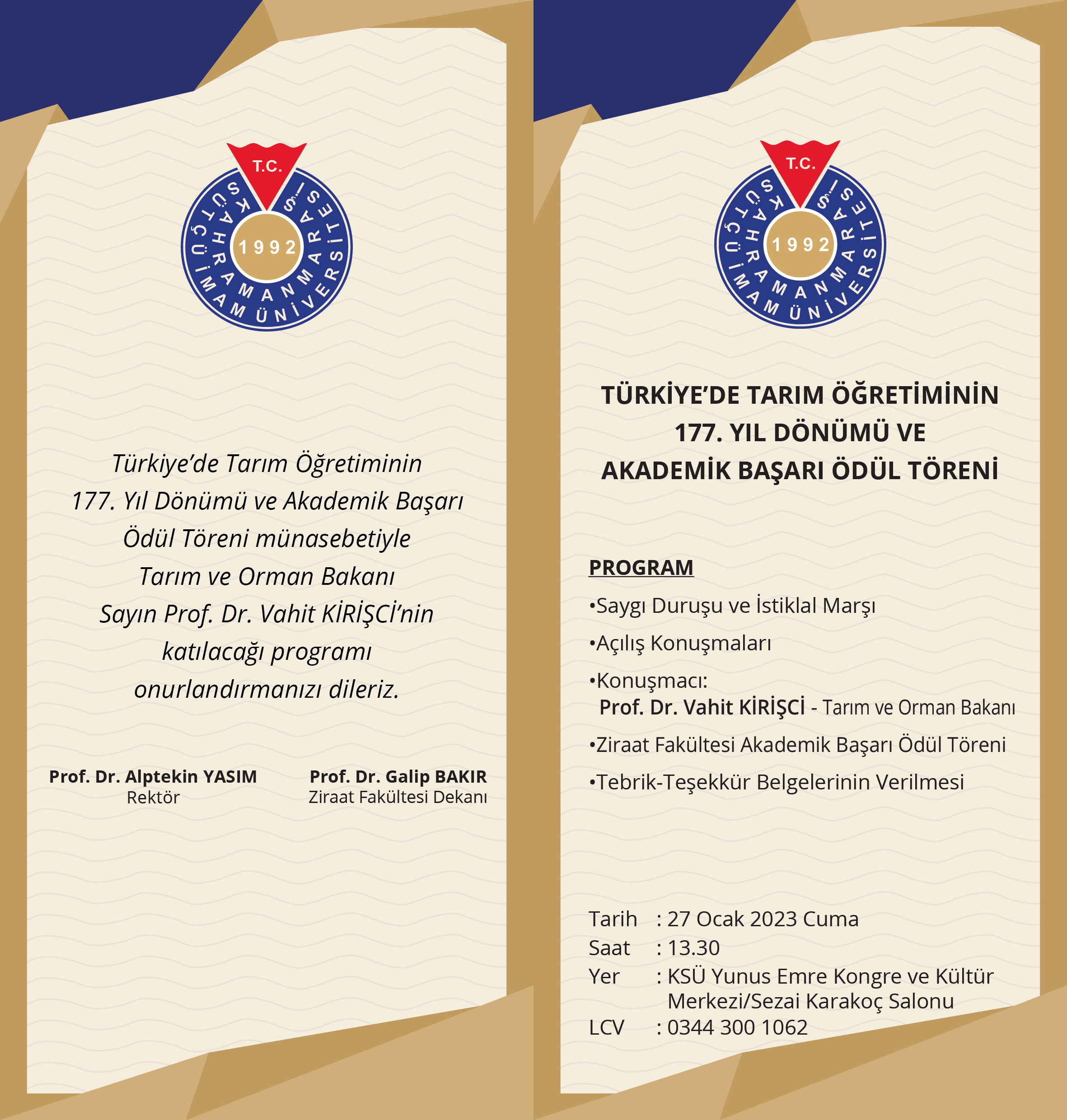 Türkiye'de Tarım Öğretiminin 177. Yıl Dönümü ve Akademik Başarı Ödül Töreni