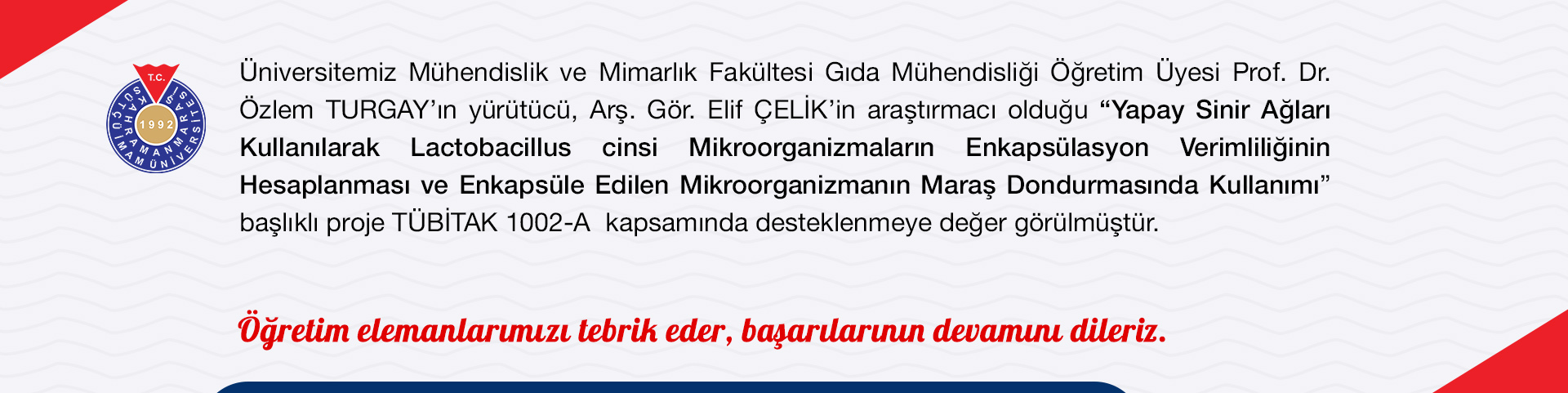 Yapay Sinir Ağları Kullanılarak Lactobacillus Cinsi Mikroorganizmaların Enkapsülasyon Verimliliğinin Hesaplanması Ve Enkapsüle Edilen Mikroorganizmanın Maraş Dondurmasında Kullanımı Projesine TÜBİTAK'tan destek