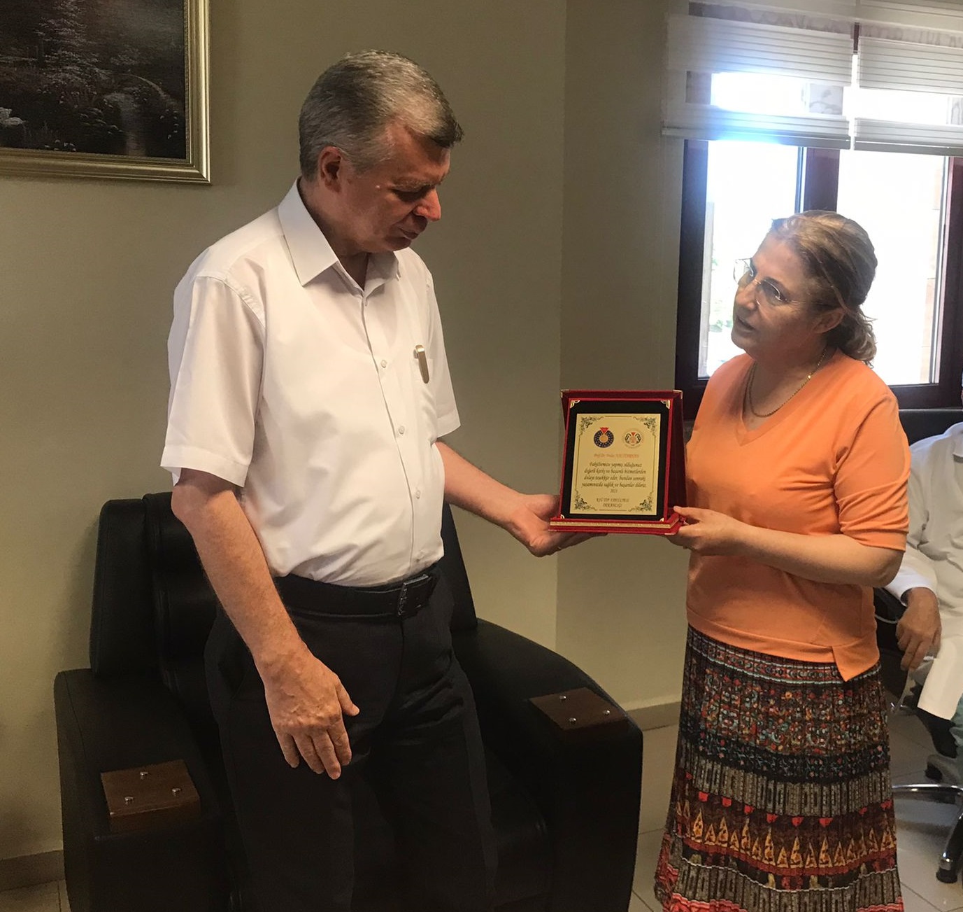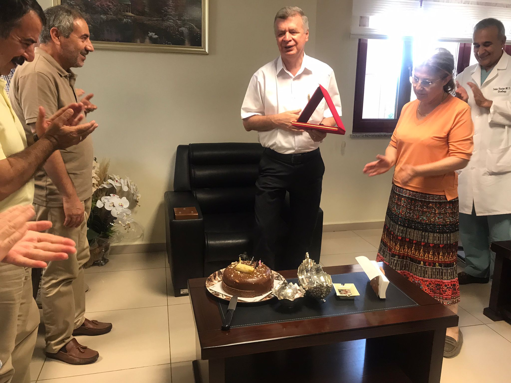Fiziksel Tıp ve Rehabilitasyon Ana Bilim Dalında uzun yıllardır emeği geçen ve Fakültemizde hizmetlerini sürdüren Sayın Prof. Dr. Vedat Nacitarhan Hocamıza; Dekanımız Prof. Dr. Hafize Öksüz, Dekan Yardımcımız Prof. Dr. Mustafa Çelik, Üniversitemiz Genel Sekreteri Ali Rıza Bekler, Fakülte Sekreterimiz Hasan Kılıç ve Fakültemiz çalışanlarının katılımıyla Fakültemiz Dekanlığında düzenlenen bir törenle emeklilik plaketi takdim edilerek, bundan sonraki emeklilik hayatında sağlık ve mutluluk dileklerinde bulunuldu.