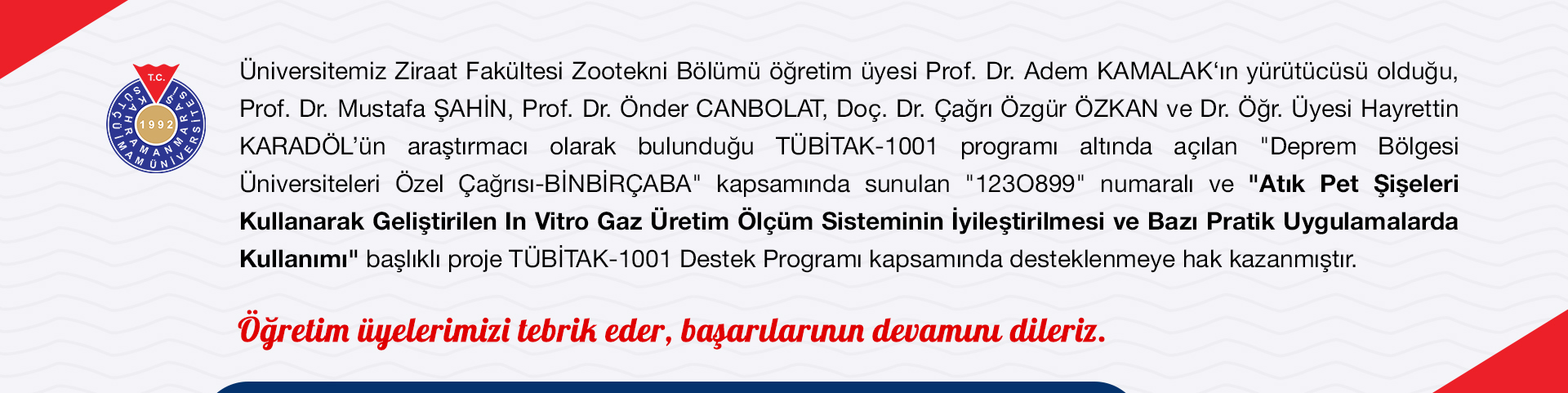 Atık Pet Şişeleri Kullanarak Geliştirilen In Vitro Gaz Üretim Ölçüm Sisteminin İyileştirilmesi ve Bazı Pratik Uygulamalarda Kullanımı projesi TÜBİTAK-1001 Destek Programı kapsamında desteklenmeye hak kazanmıştır