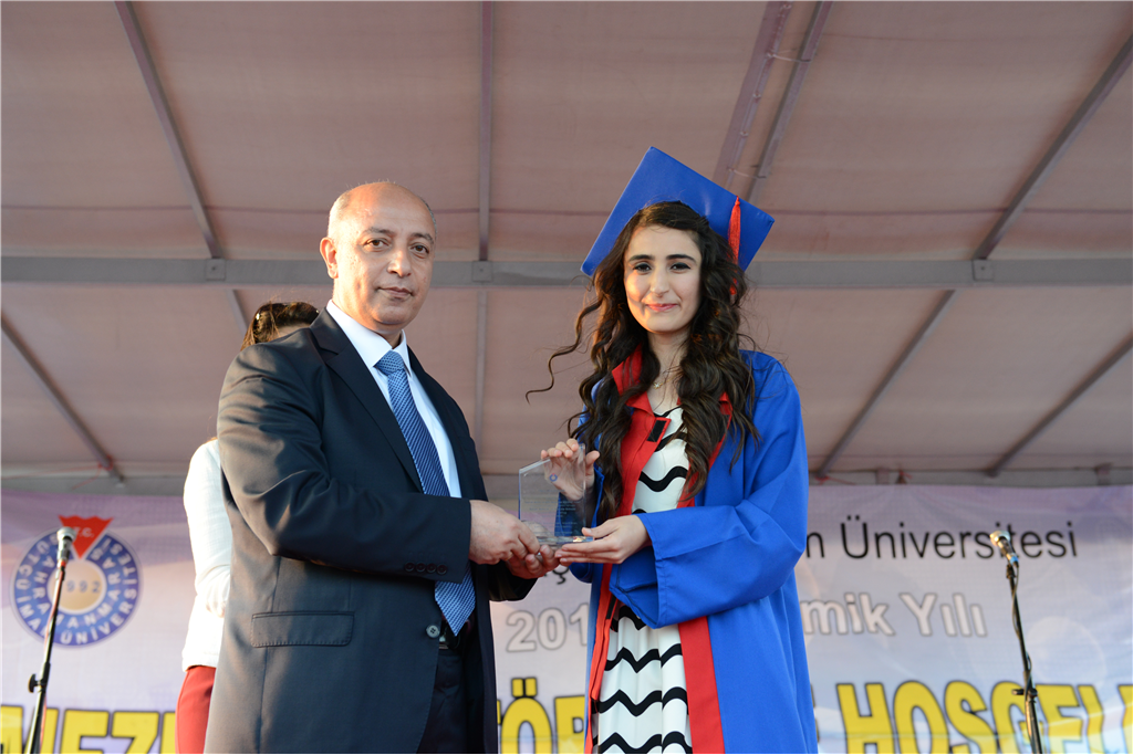 öğrenciler ödüllerini Rektör Yardımcısı Prof. Dr. İsmail Bakan’ın elinden aldı.