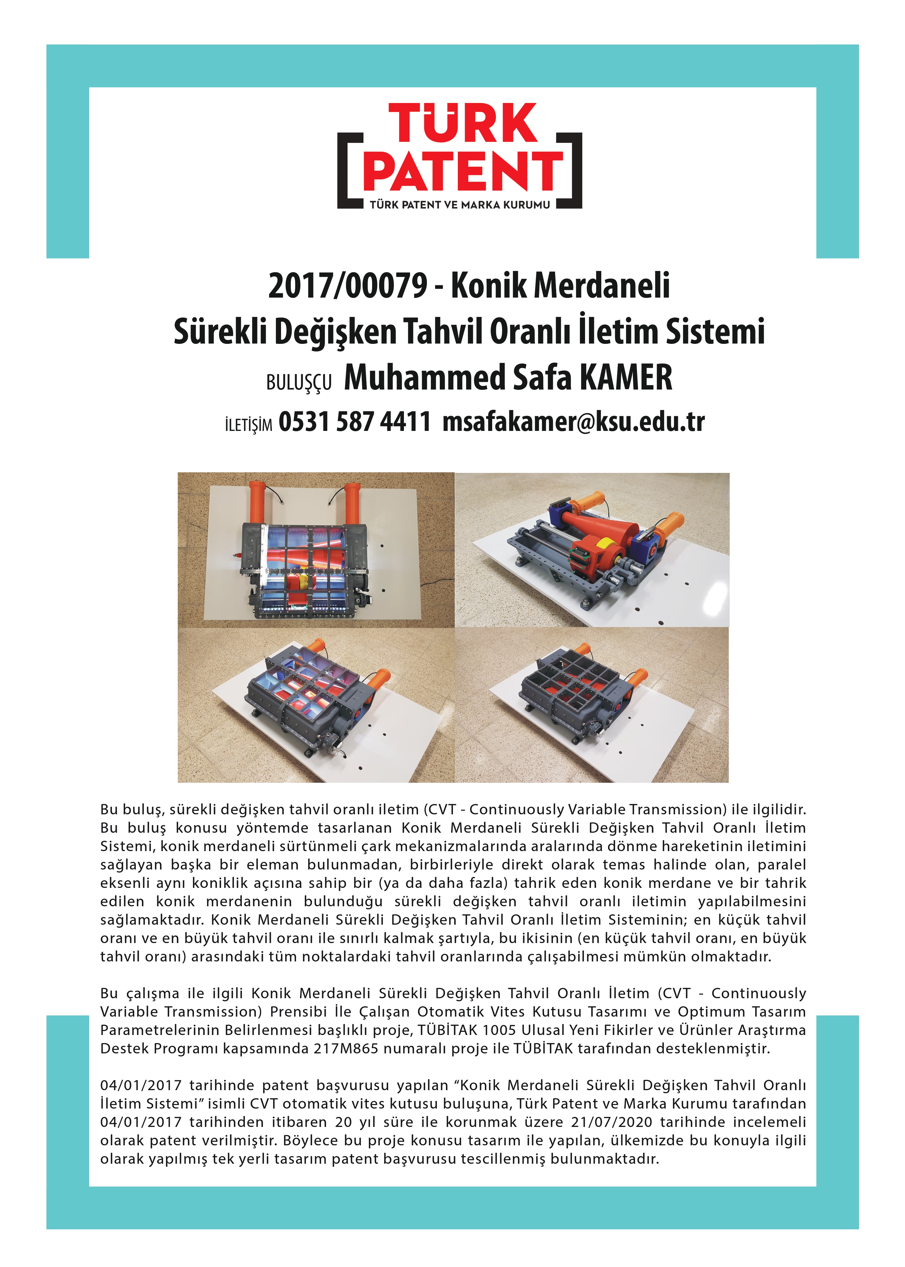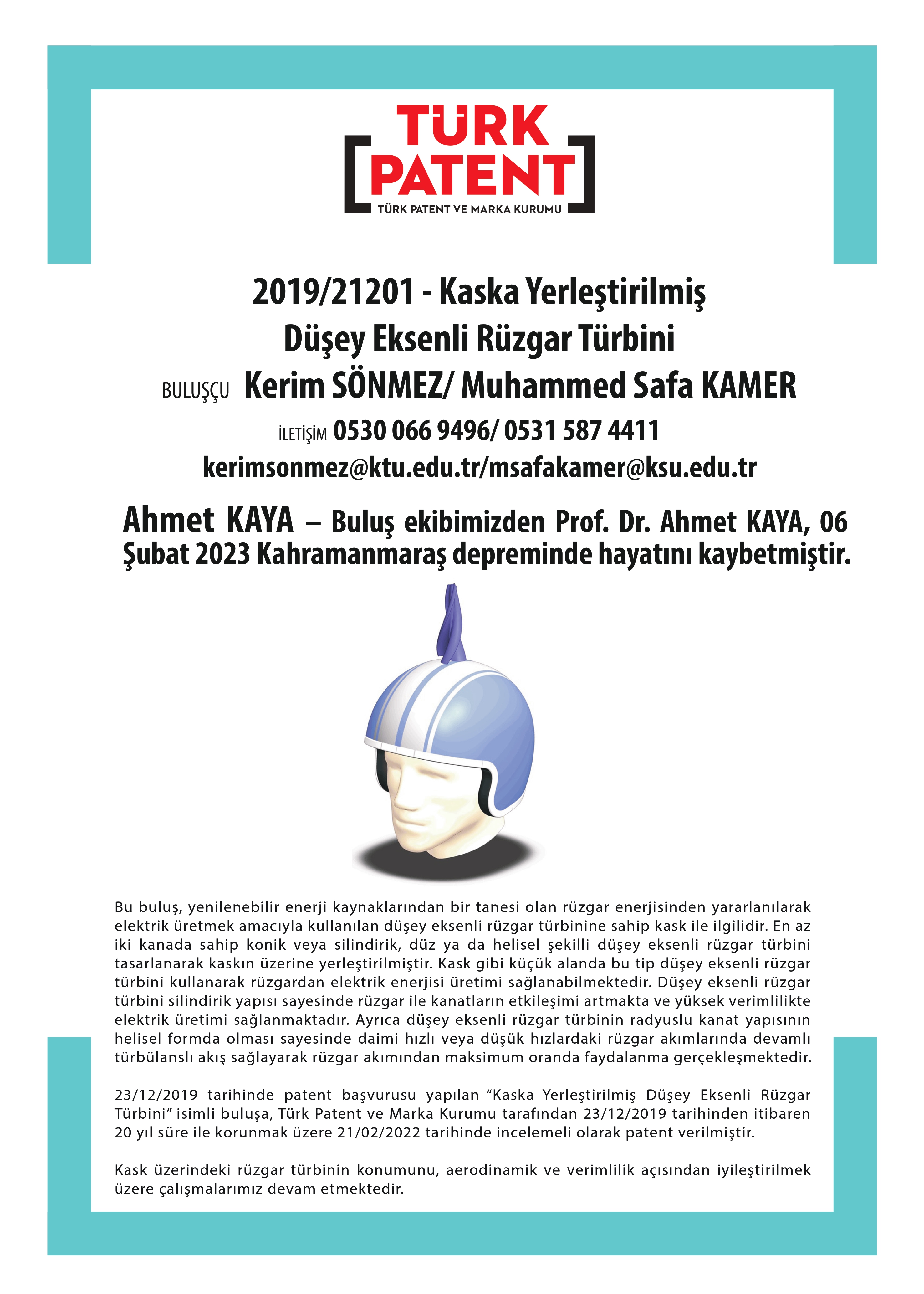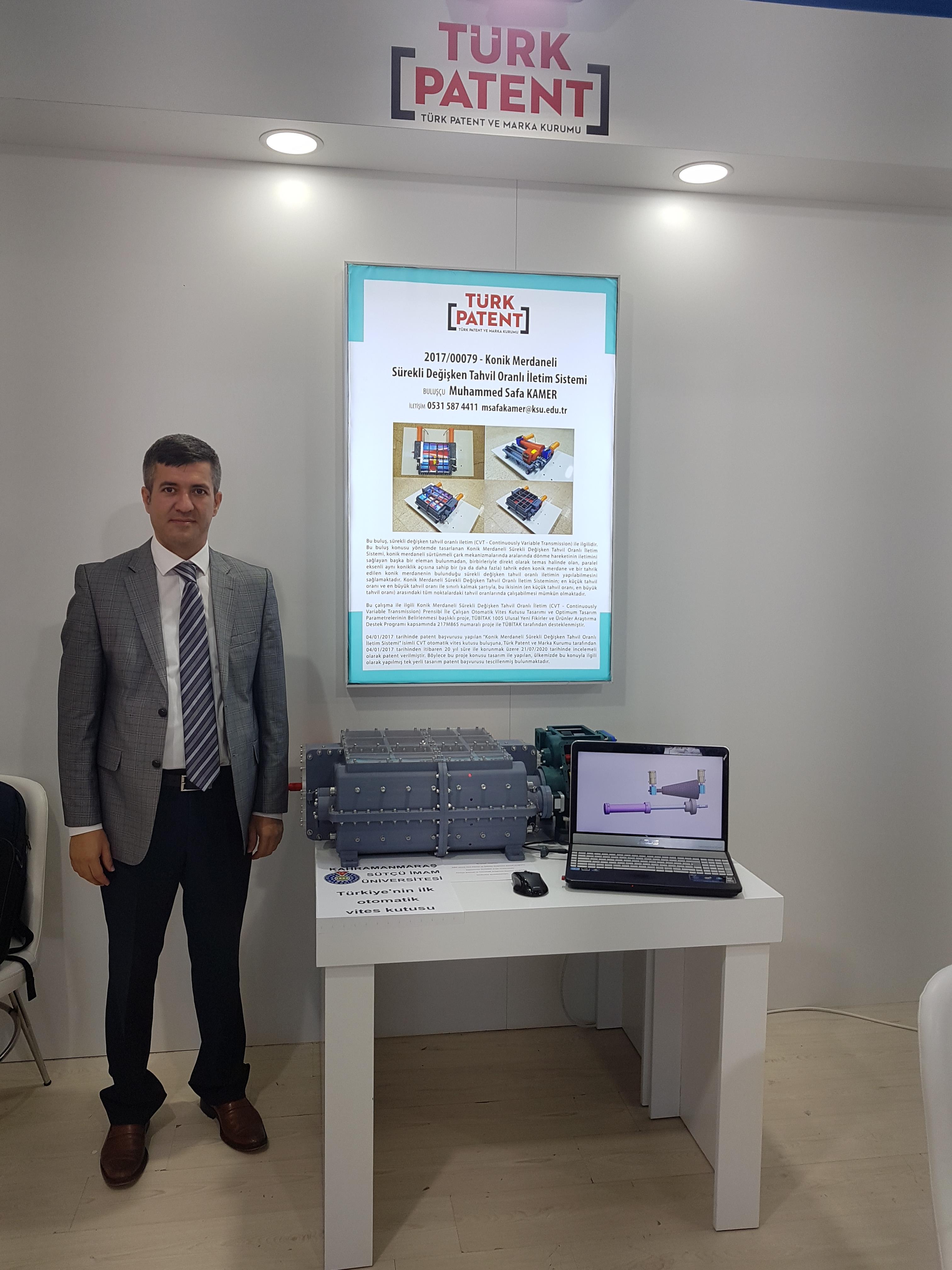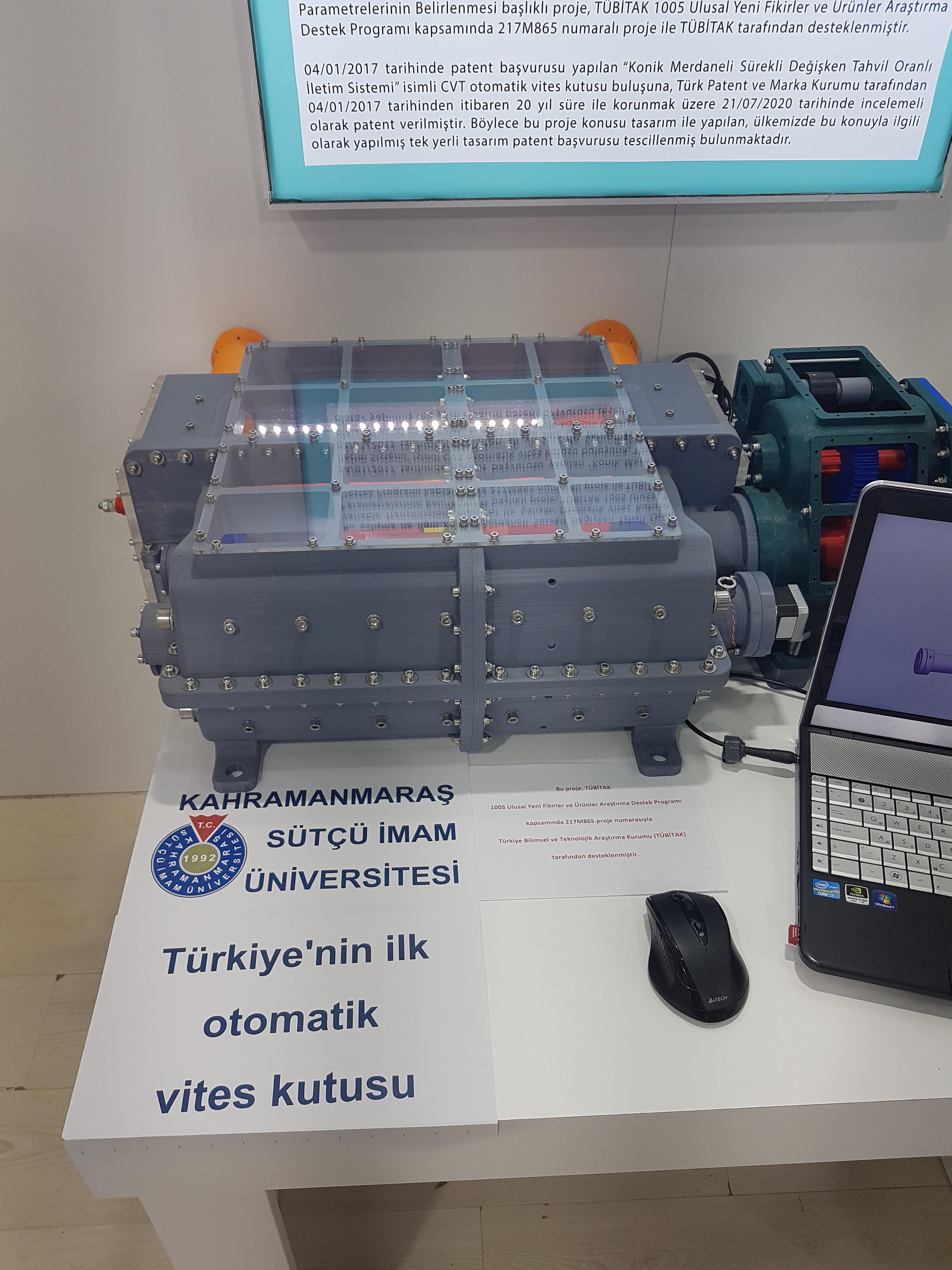 2017/00079 - Konik Merdaneli Sürekli Değişken Tahvil Oranlı İletim Sistemi ve 2019/21201 - Kaska Yerleştirilmiş Düşey Eksenli Rüzgar Türbini buluşlarının poster ve prototip olarak sergilendiği fuarda ziyaretçilere Kahramanmaraş Sütçü İmam Üniversitesi ve sergilenen buluşlar hakkında detaylı bilgiler verildi.